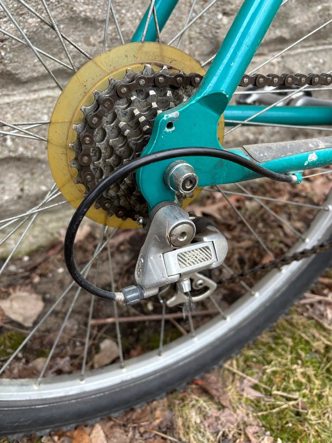 I am not selling this with the intention of someone commuting on it as is, or using it as a actual mountain bike. I will not tell you it’s ‘tuned up’ and ‘ready to roll’. It is not. It IS rideable in theory, but it is not enjoyable, or particularly safe. However, if you’re an experienced ‘bike person’ you could get it home no problem. It needs grips and pedals and cables and pads, and every bearing needs servicing. I took the original tires off and threw some other beaters on to ride it around the block and check systems. Shame about the OG tires, it clearly sat for a long time with no air, and the flat spots frayed on the sidewall. Having said all that, EVERYTHING WORKS.