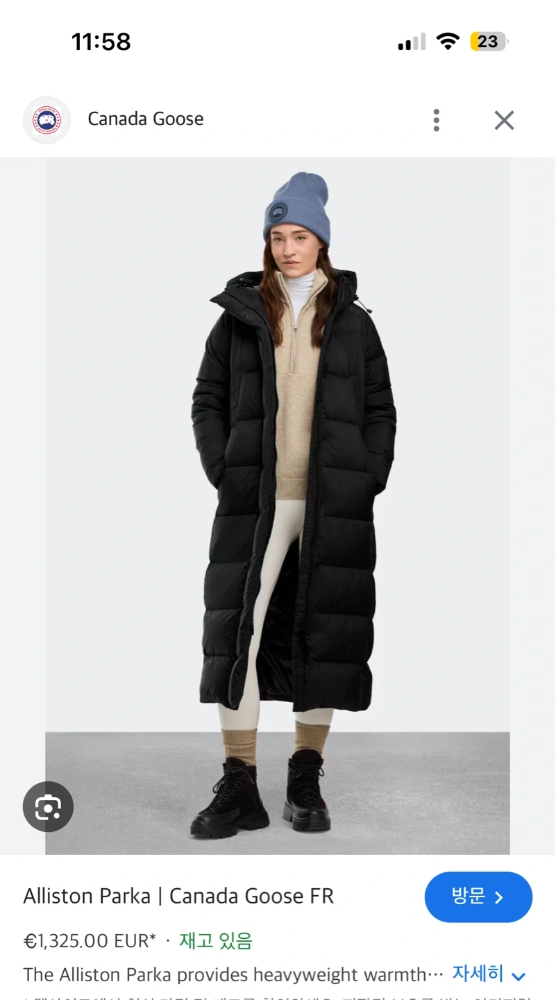 This is the Canada Goose Alliston Parka. It provides heavyweight warmth. This jacket is black and has a long length.