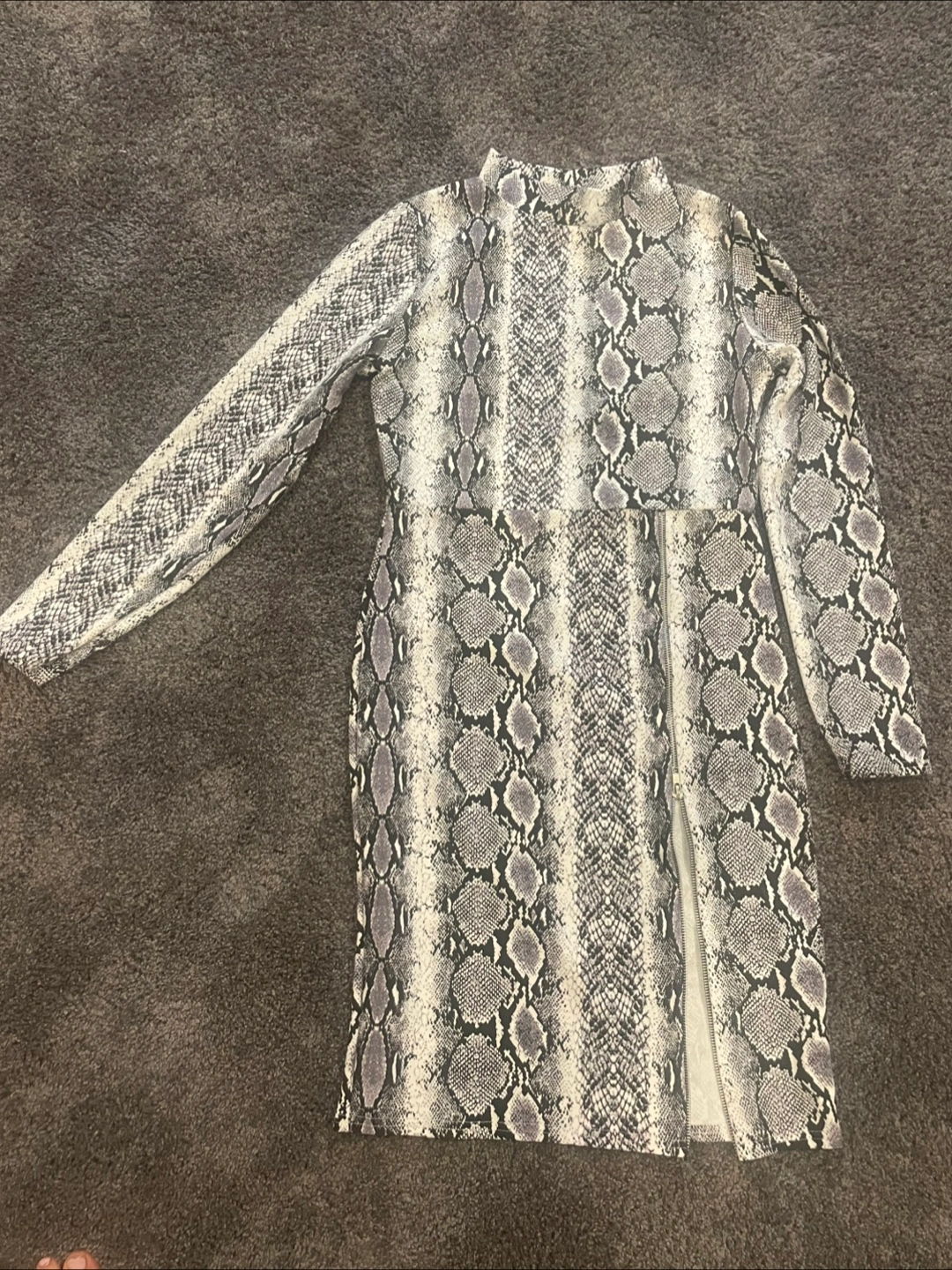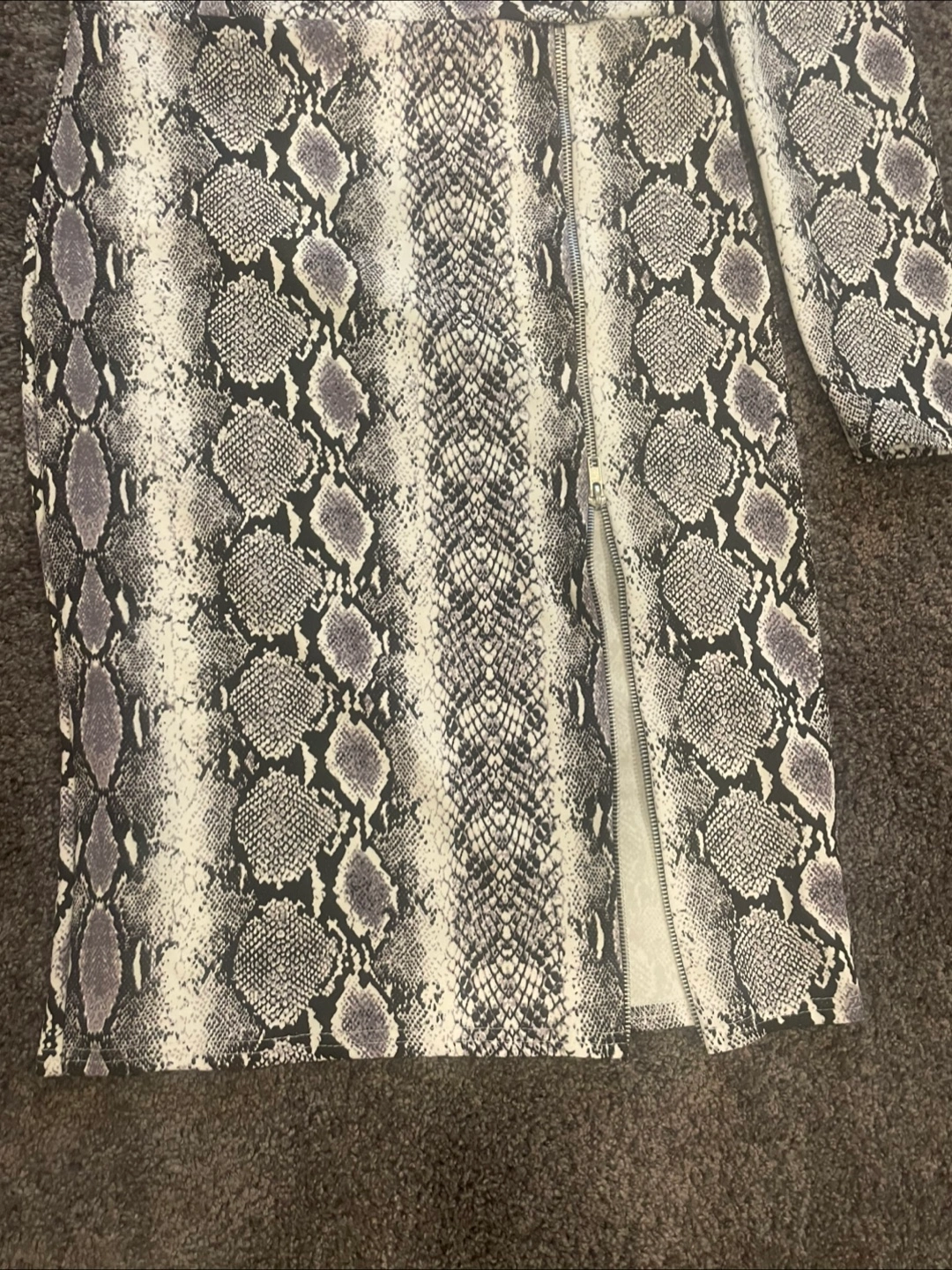Here's a stylish snakeskin print dress! It's in great condition and ready for a new home. The dress features a unique snakeskin pattern that's sure to turn heads. Zipper slit Perfect for a night out or a special occasion! Size medium
