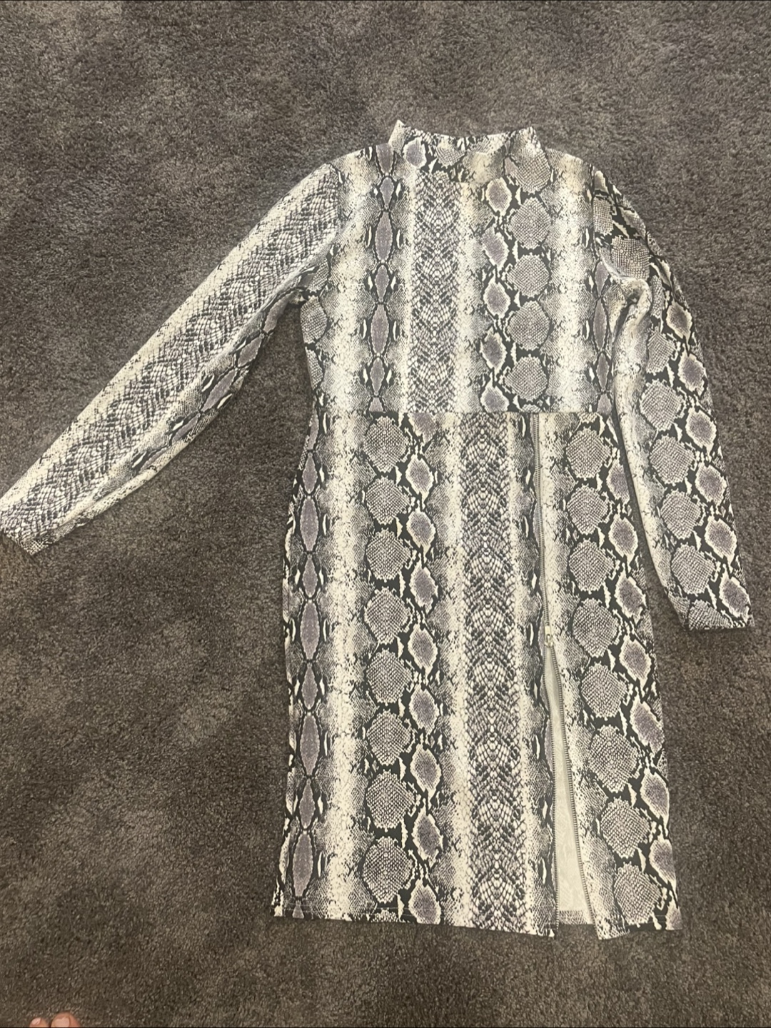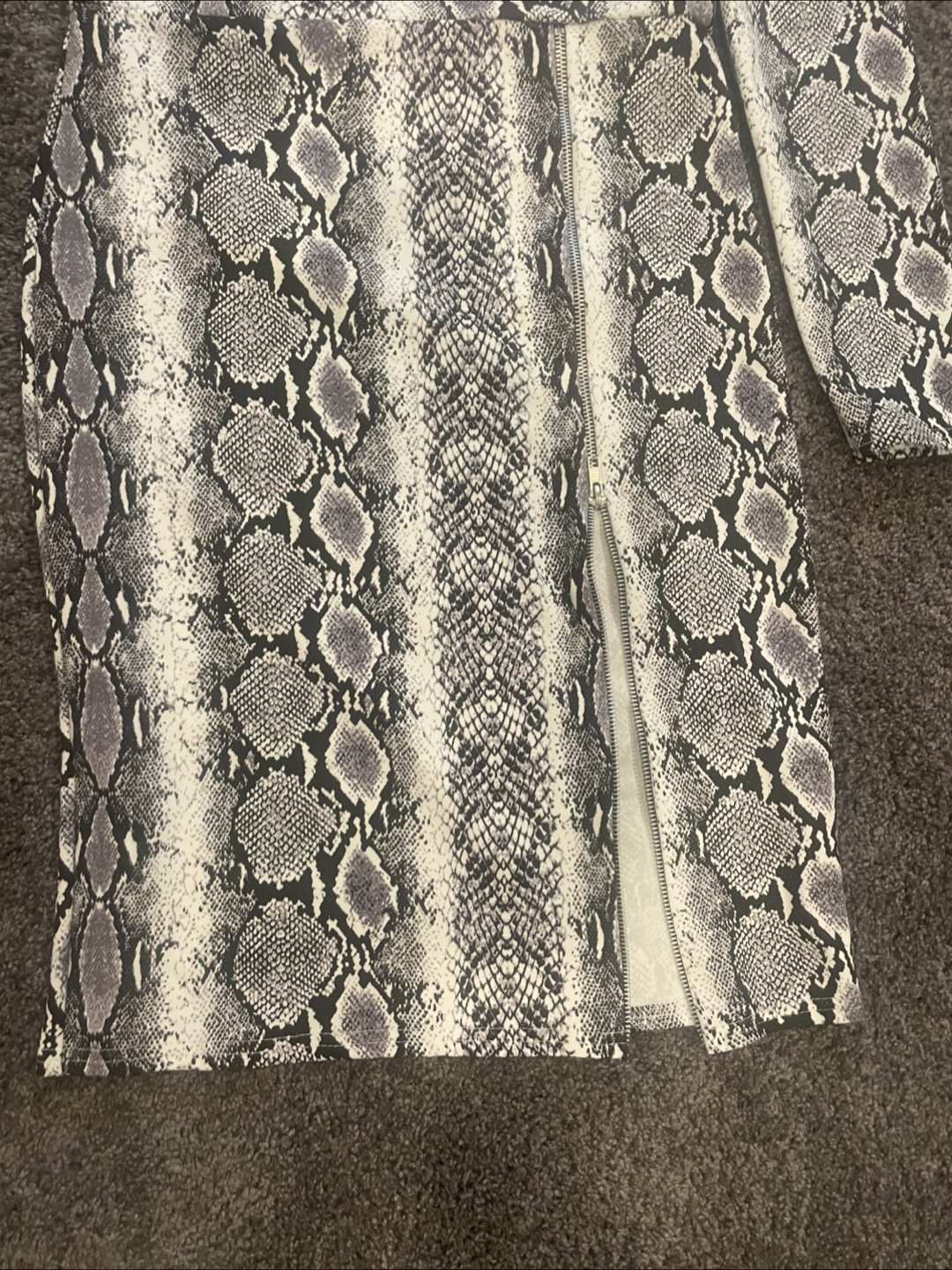 Here's a stylish snakeskin print dress! It's in great condition and ready for a new home. The dress features a unique snakeskin pattern that's sure to turn heads. Zipper slit Perfect for a night out or a special occasion! Size medium