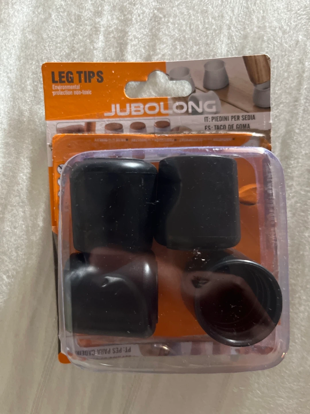 These are Jubolong leg tips for furniture. They provide environmental protection and are non-toxic. Package includes four black leg tips.