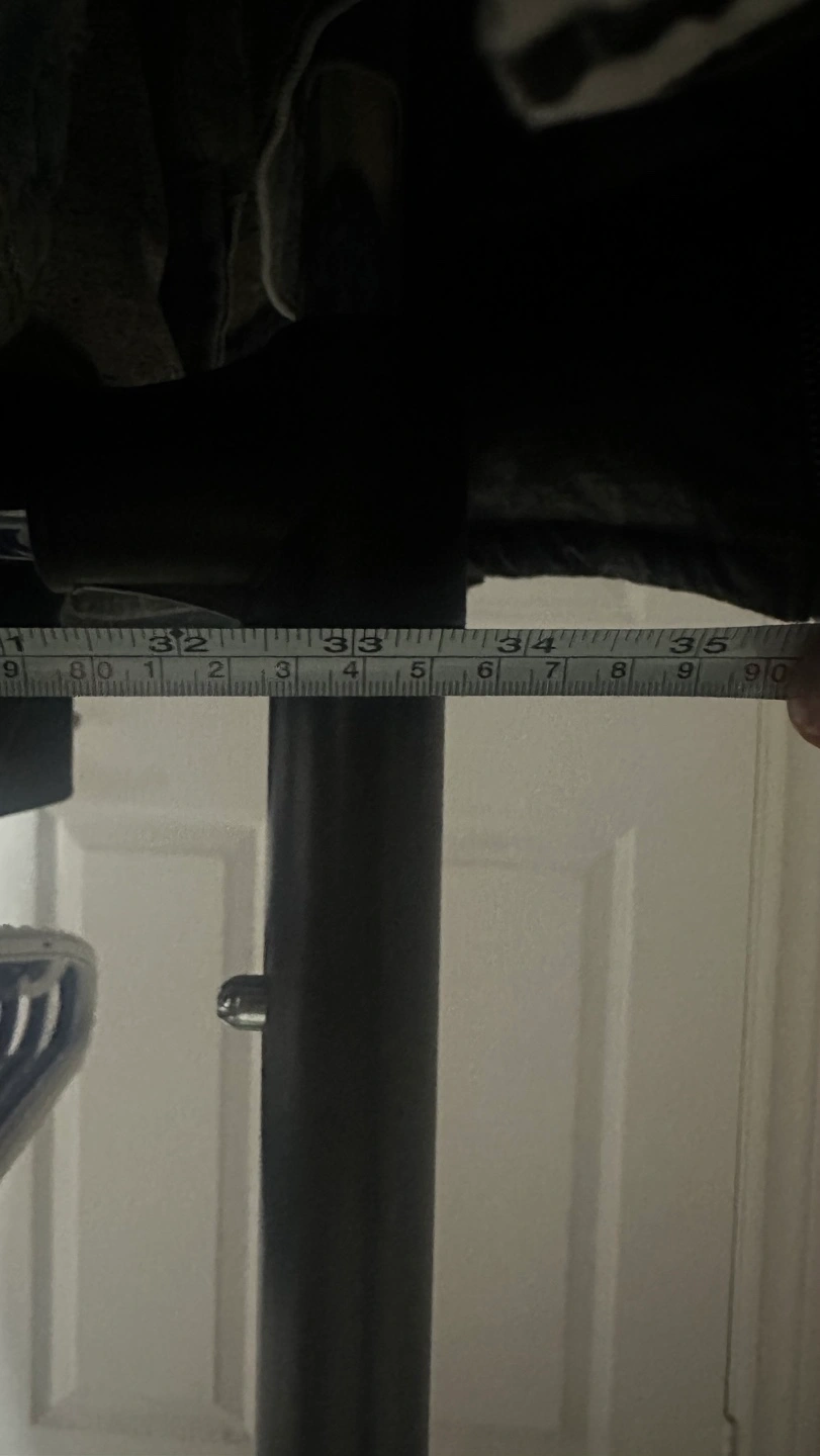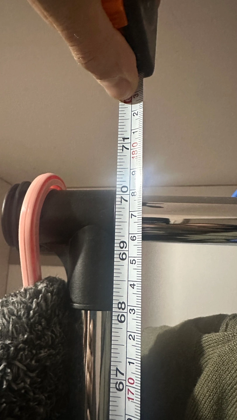 Portable clothing rack, great for organizing clothes. Features a sturdy metal frame and rolling wheels for easy mobility. Approximately 71cm tall and 35cm wide.