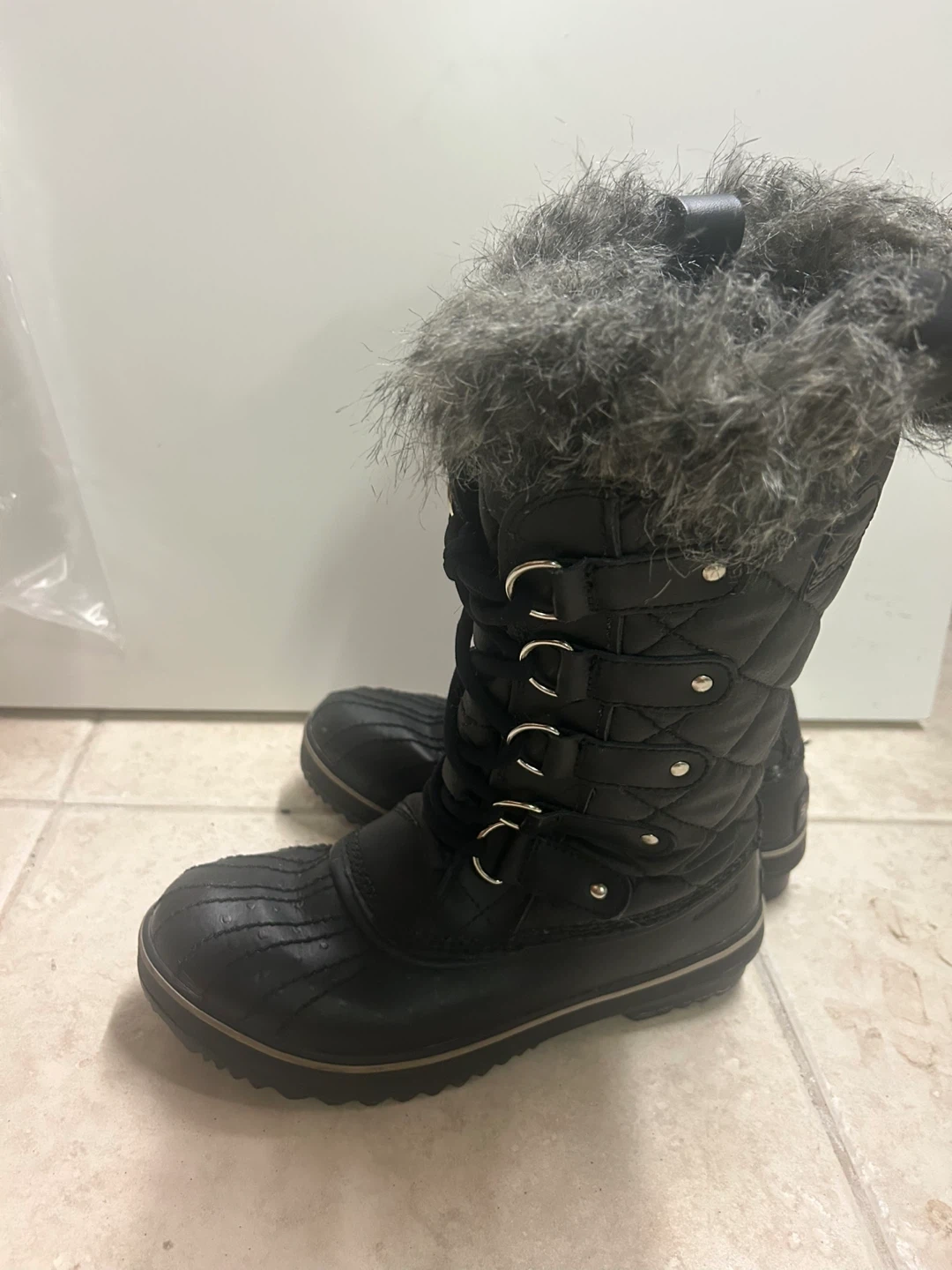 Sorel Black Winter Boots with Faux Fur