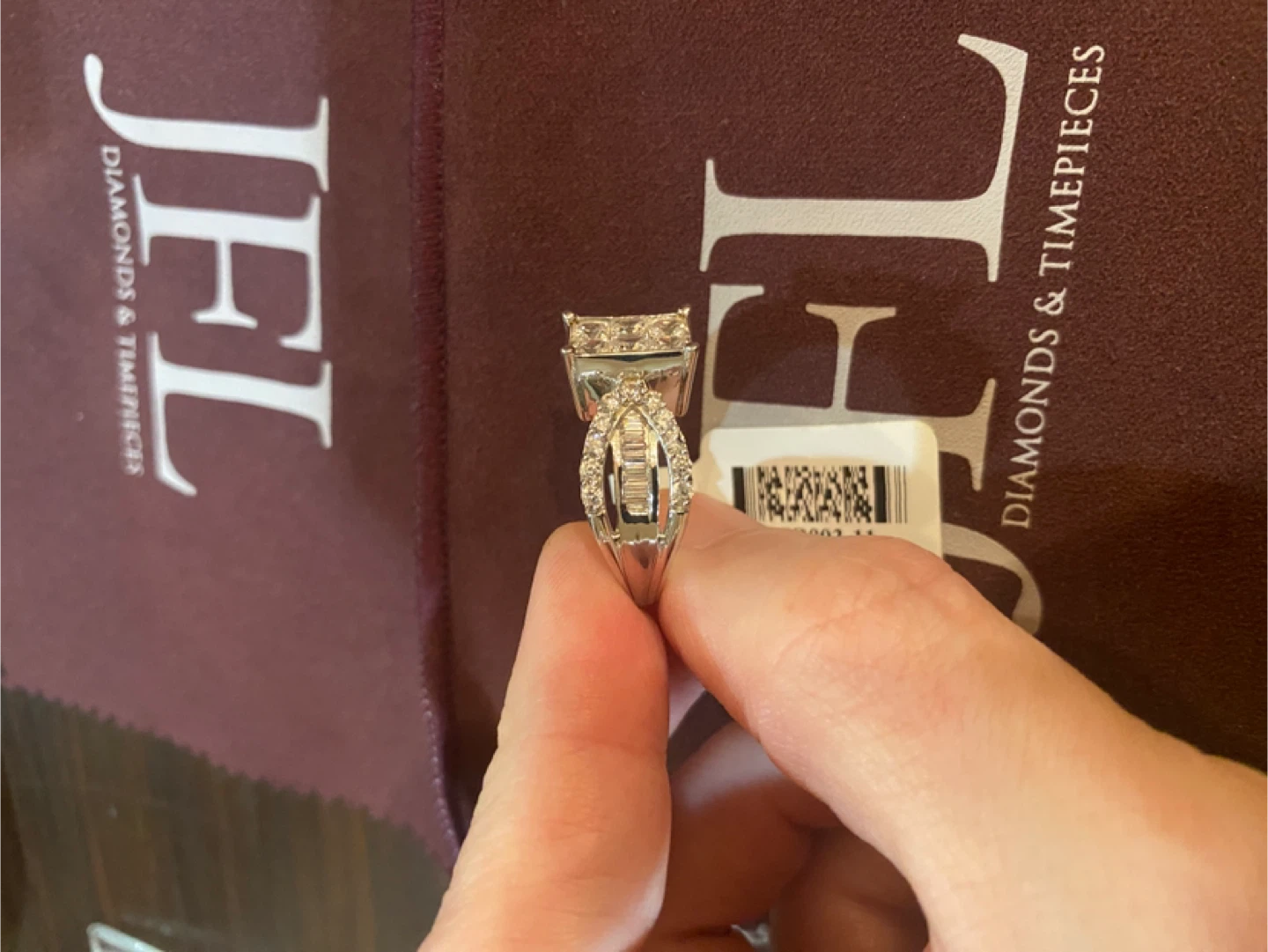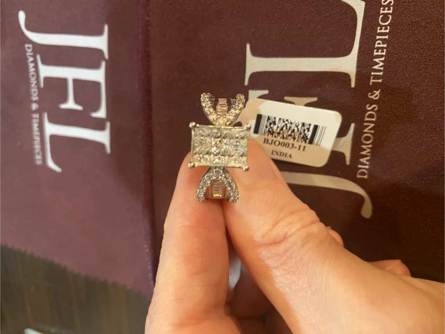Selling a beautiful JFL diamond ring, model BJO003-11. It comes in its original box and is in excellent condition! Perfect for a special occasion or a lovely gift for someone special