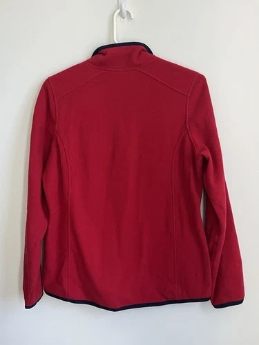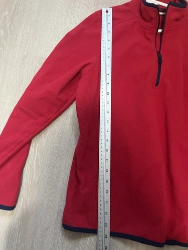 L.L. Bean Red Fleece Quarter-Zip Pullover with Navy Accents Vint