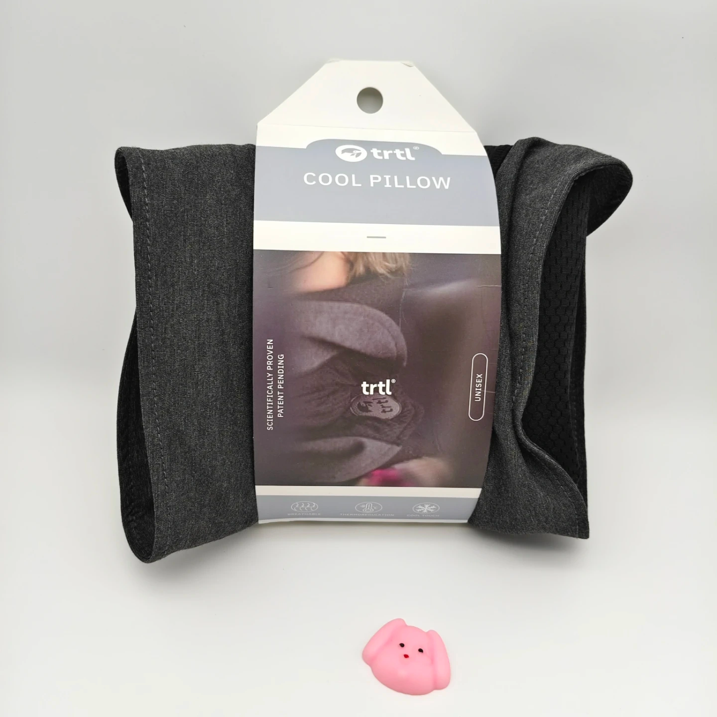 This Trtl Travel Pillow is designed for travellers seeking comfort. It's made with breathable rayon fabric and features innovative mesh venting for extra airflow. The pillow provides complete head support and helps eliminate neck tension.