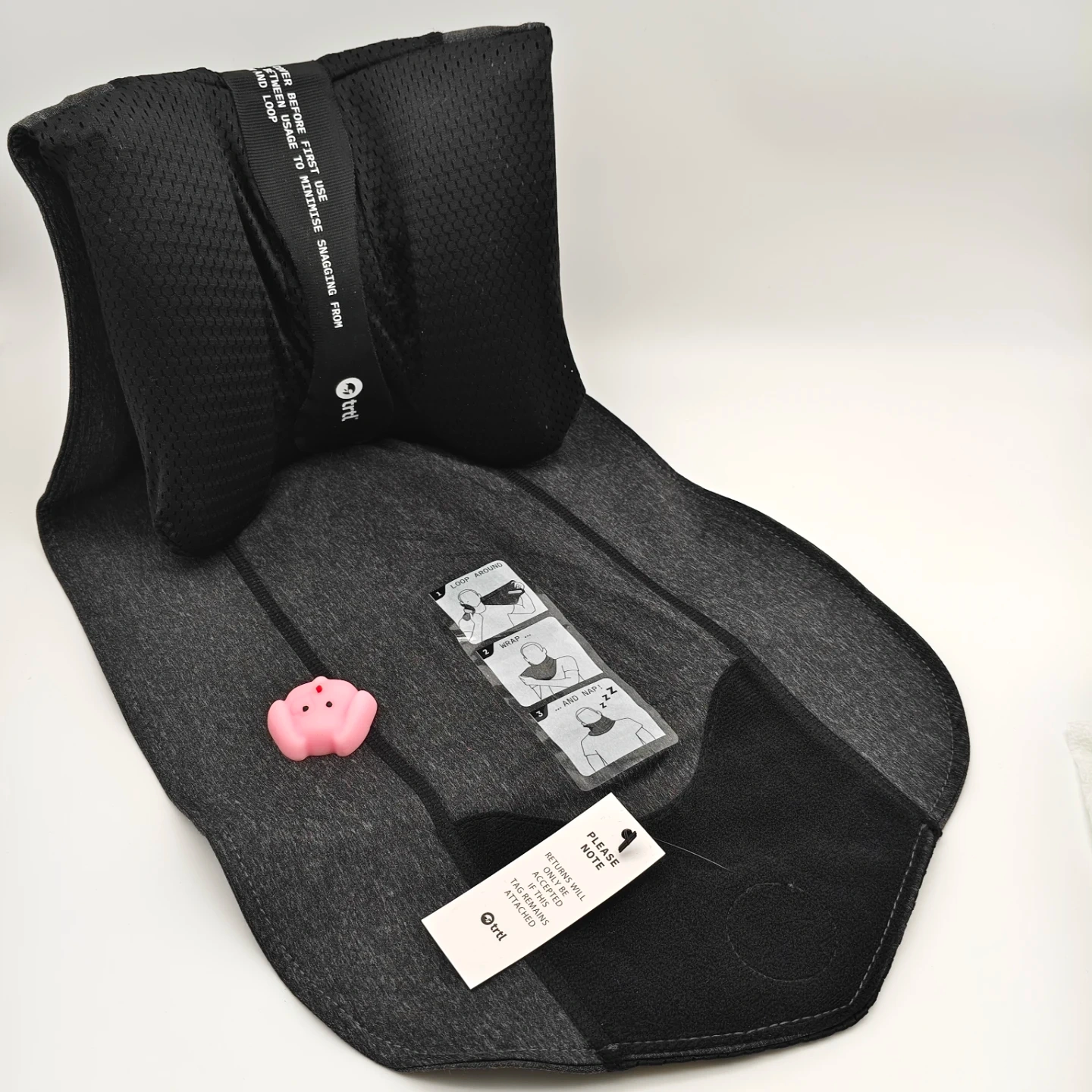 This Trtl Travel Pillow is designed for travellers seeking comfort. It's made with breathable rayon fabric and features innovative mesh venting for extra airflow. The pillow provides complete head support and helps eliminate neck tension.