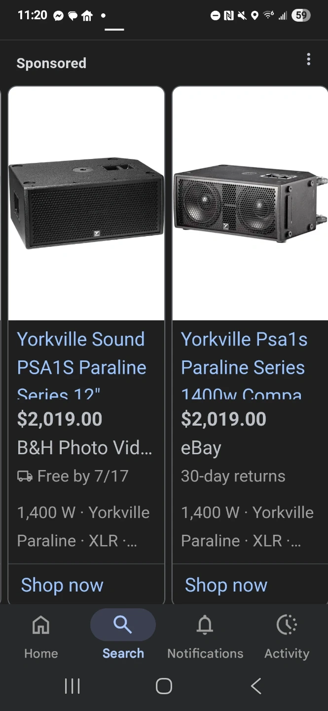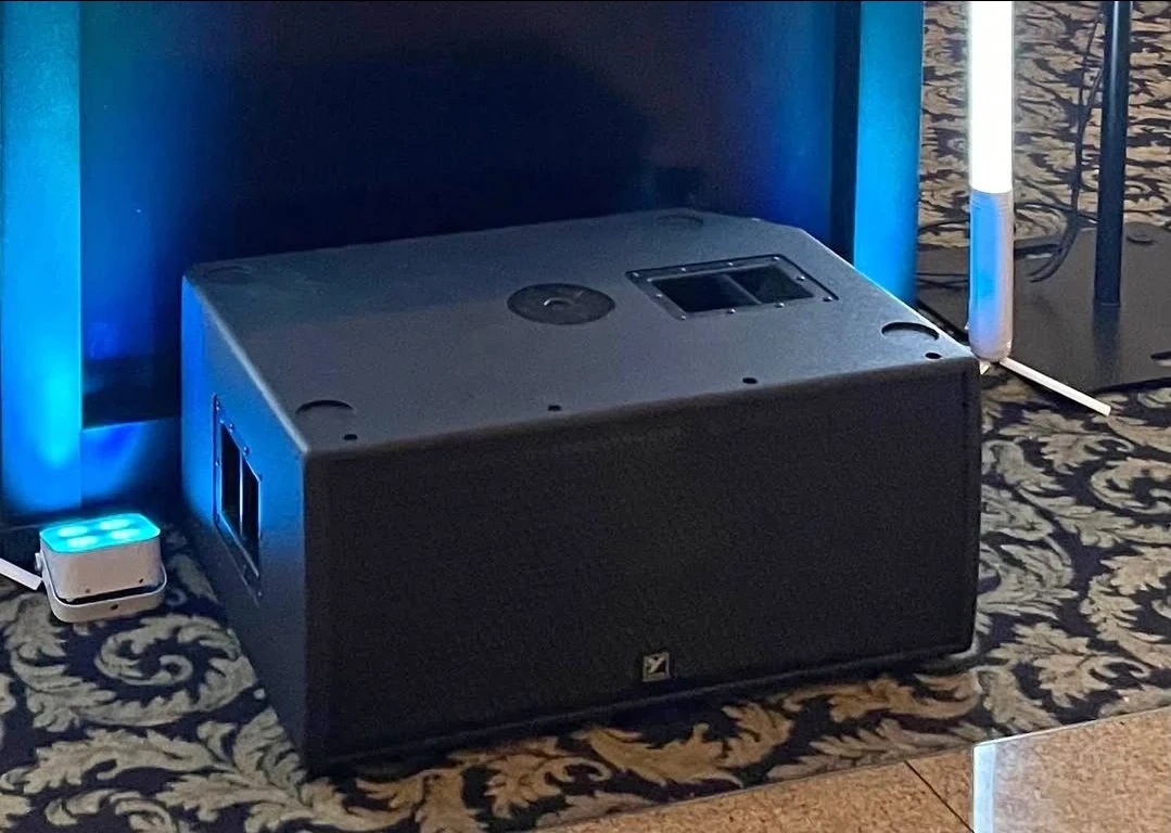 This is a Yorkville PSA1S Paraline Series 12" active bass reflex subwoofer. It's a dual 12-inch unit designed as an ideal companion for PSA1 full range loudspeaker systems. It's active and powered.
