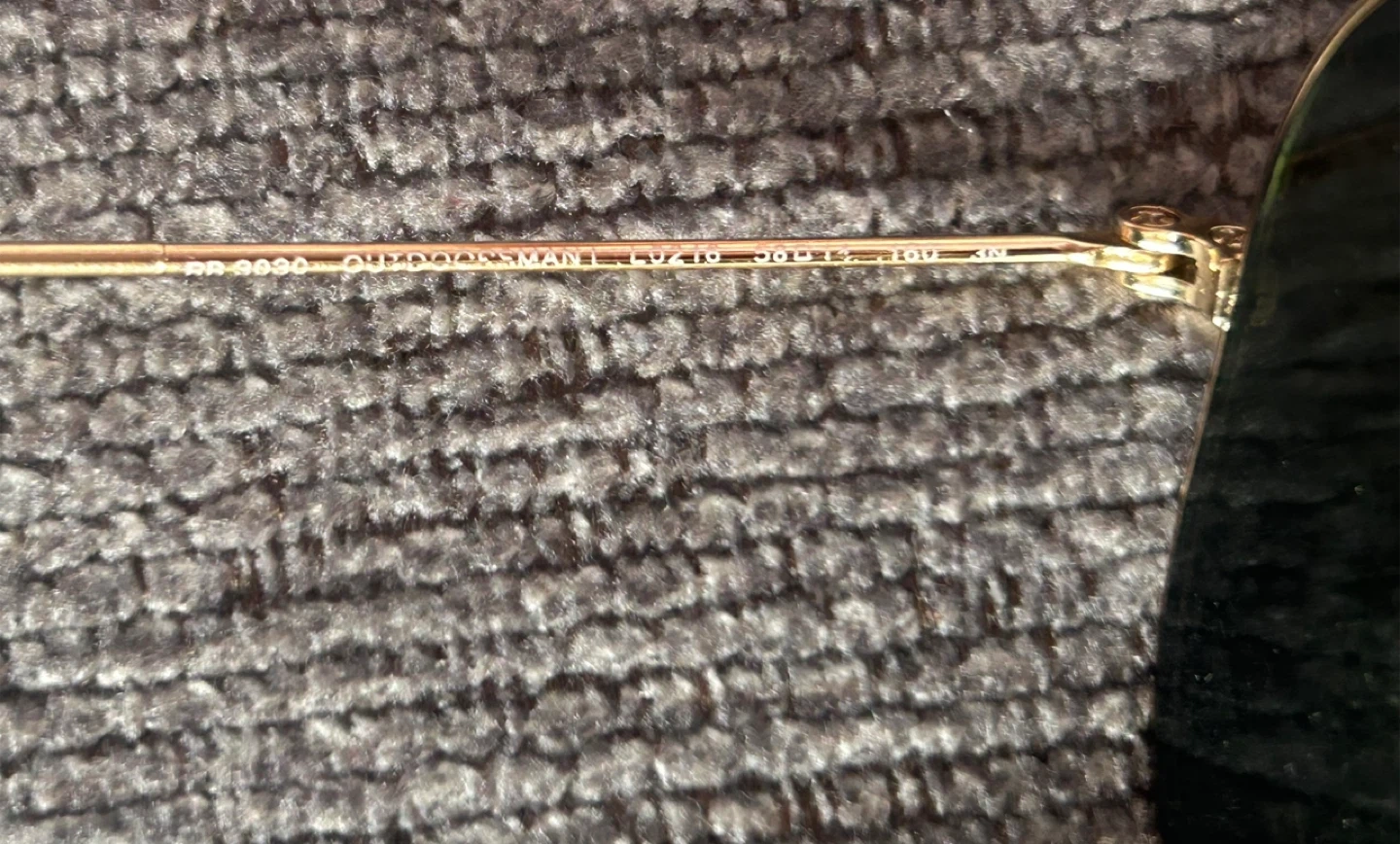 Classic Ray-Ban Outdoorsman II sunglasses with gold metal frame and dark green lenses. They feature the iconic double bridge and leather brow bar. Perfect for sunny days!