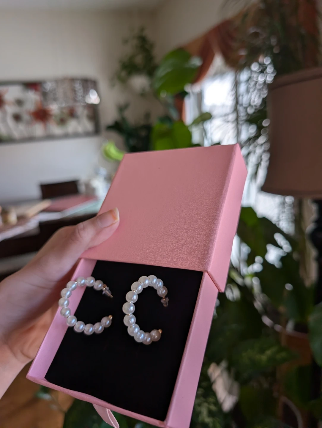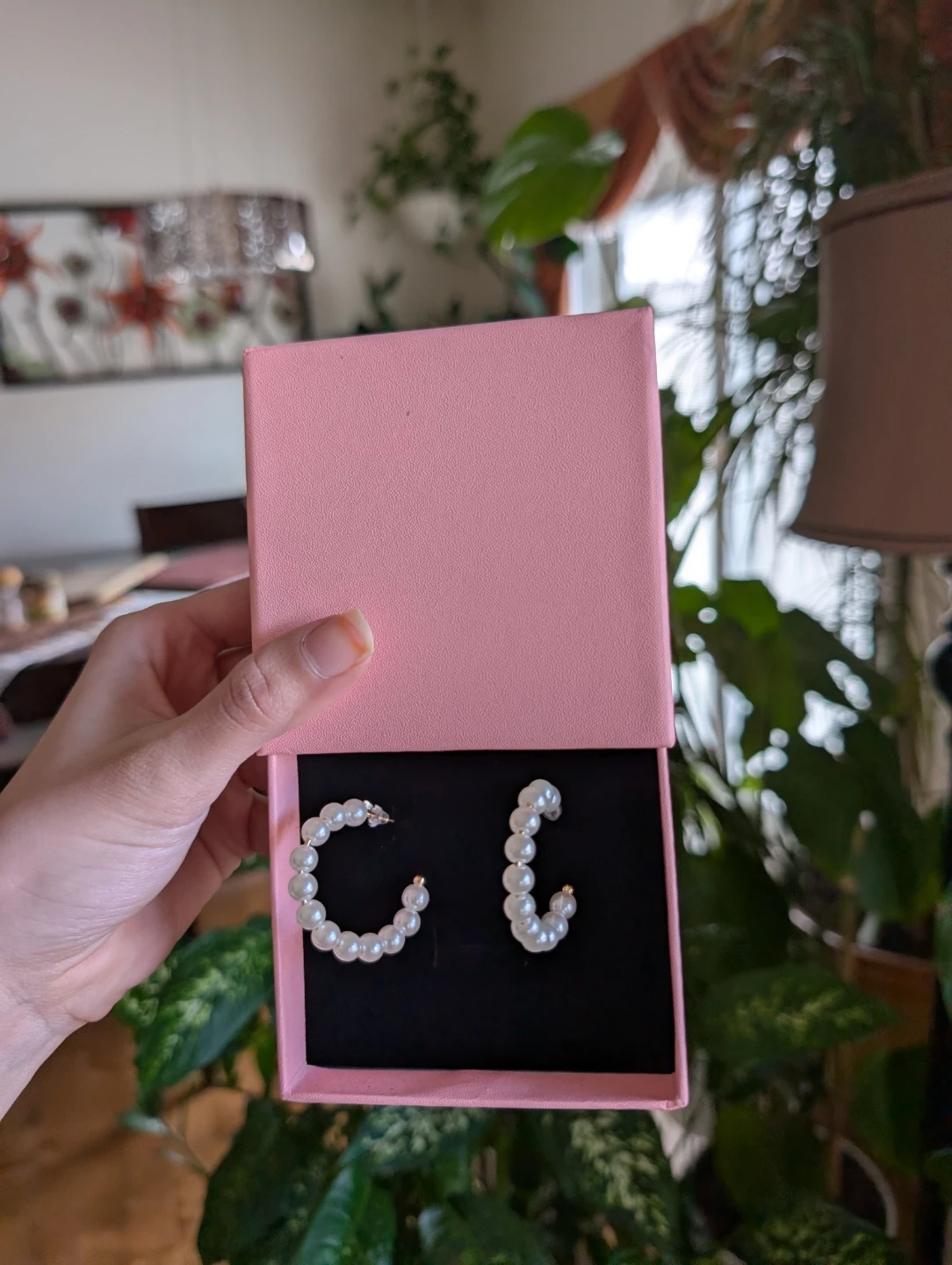 Buy & SellNush Pearl Hoop Earrings with Pink Gift BoxNush Pearl Hoop Earrings with Pink Gift Box$15These stylish hoop earrings are adorned with small pearls. They come in a cute pink gift box. Great for adding a touch of elegance to any outfit!ConditionNewWHERE TO MEET58 Saddlelake DrView MapSELLERverifiedNubahilNortheast Calgary650 reviews0 chats·0 favorites·1 viewsSEND CHAT TO SELLERHi Nubahil! I’m interested in your listing.Hi Nubahil! I’m interested in your listing.Get the Karrot app to chatSign In to chat