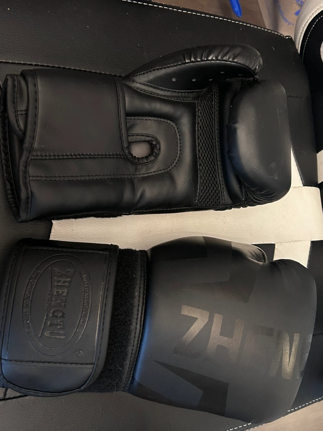 Selling a pair of Zhengtu boxing gloves in black. They appear to be in good condition and ready for your next training session!