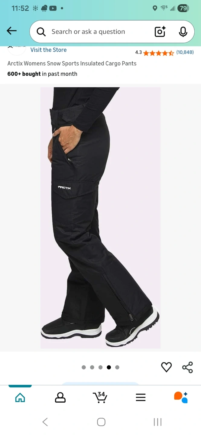 These are Arctix women's snow sports insulated cargo pants in black. They feature a durable construction for cold weather activities. Cargo pockets offer extra storage.