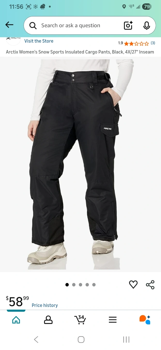 These are Arctix women's snow sports insulated cargo pants in black. They feature a durable construction for cold weather activities. Cargo pockets offer extra storage.