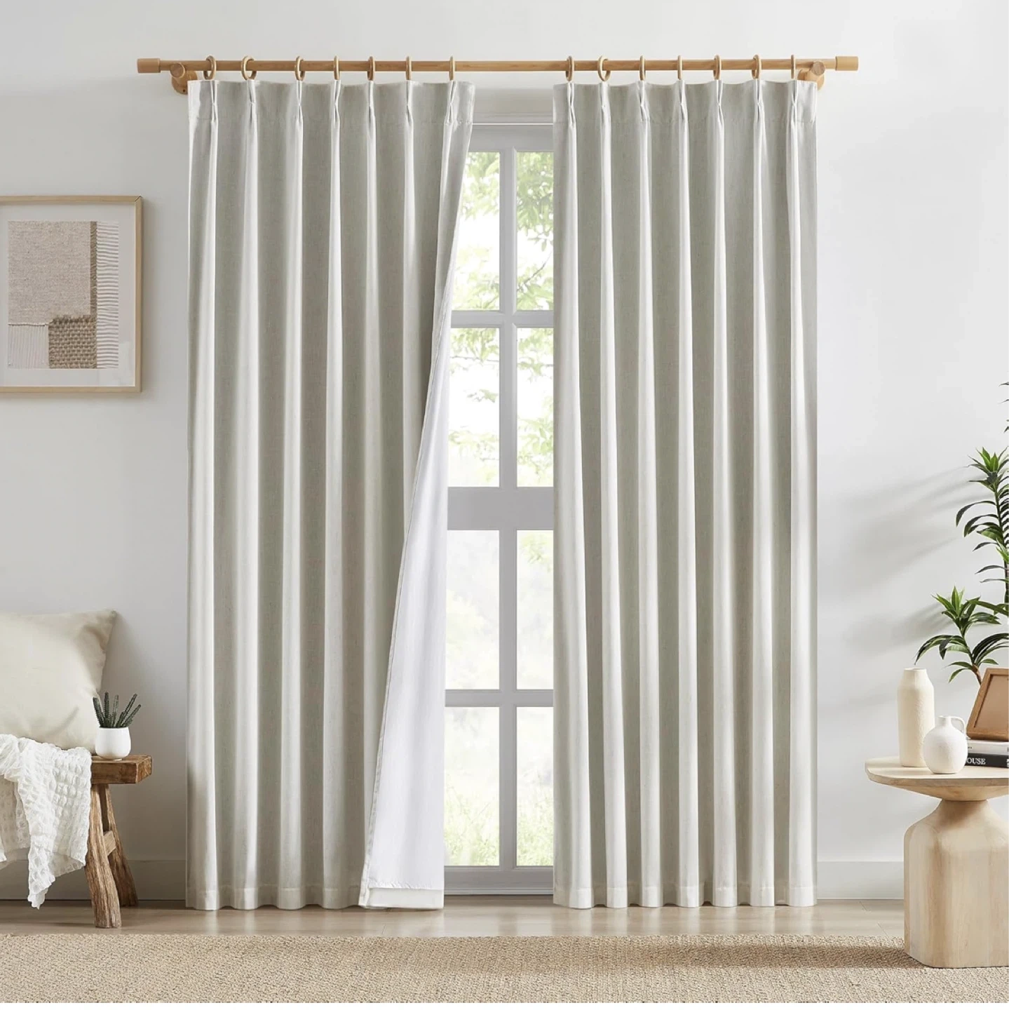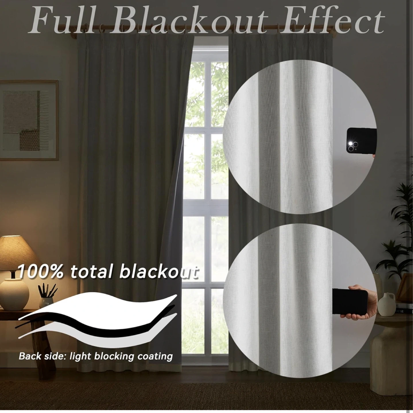 Natural Linen Full Blackout Curtains for Bedroom Living Room,Pinch Pleat Window Drapes with Hooks,Back Tab Boho Neutral Block Out Darkening Curtains 84 Inches Long 2 Panels Set