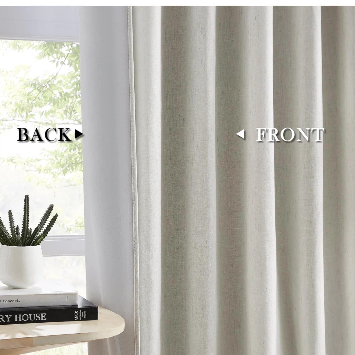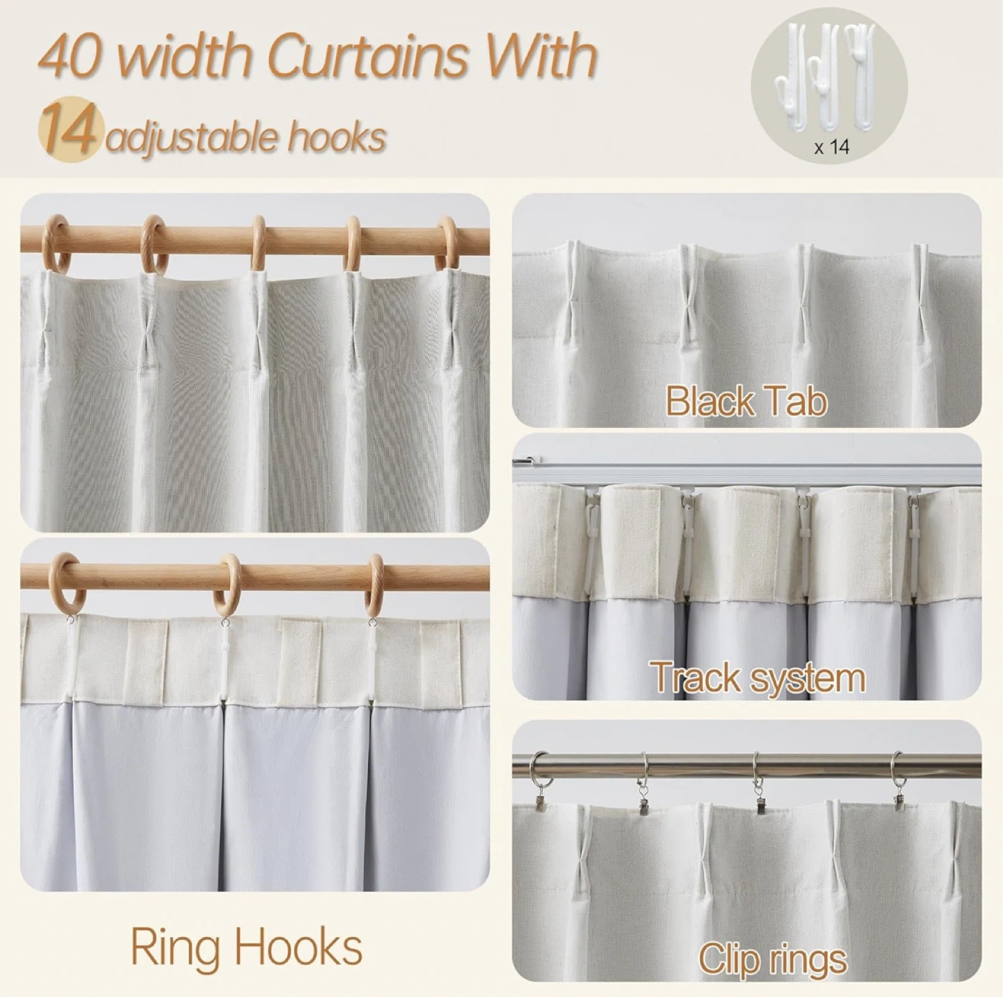 Natural Linen Full Blackout Curtains for Bedroom Living Room,Pinch Pleat Window Drapes with Hooks,Back Tab Boho Neutral Block Out Darkening Curtains 84 Inches Long 2 Panels Set