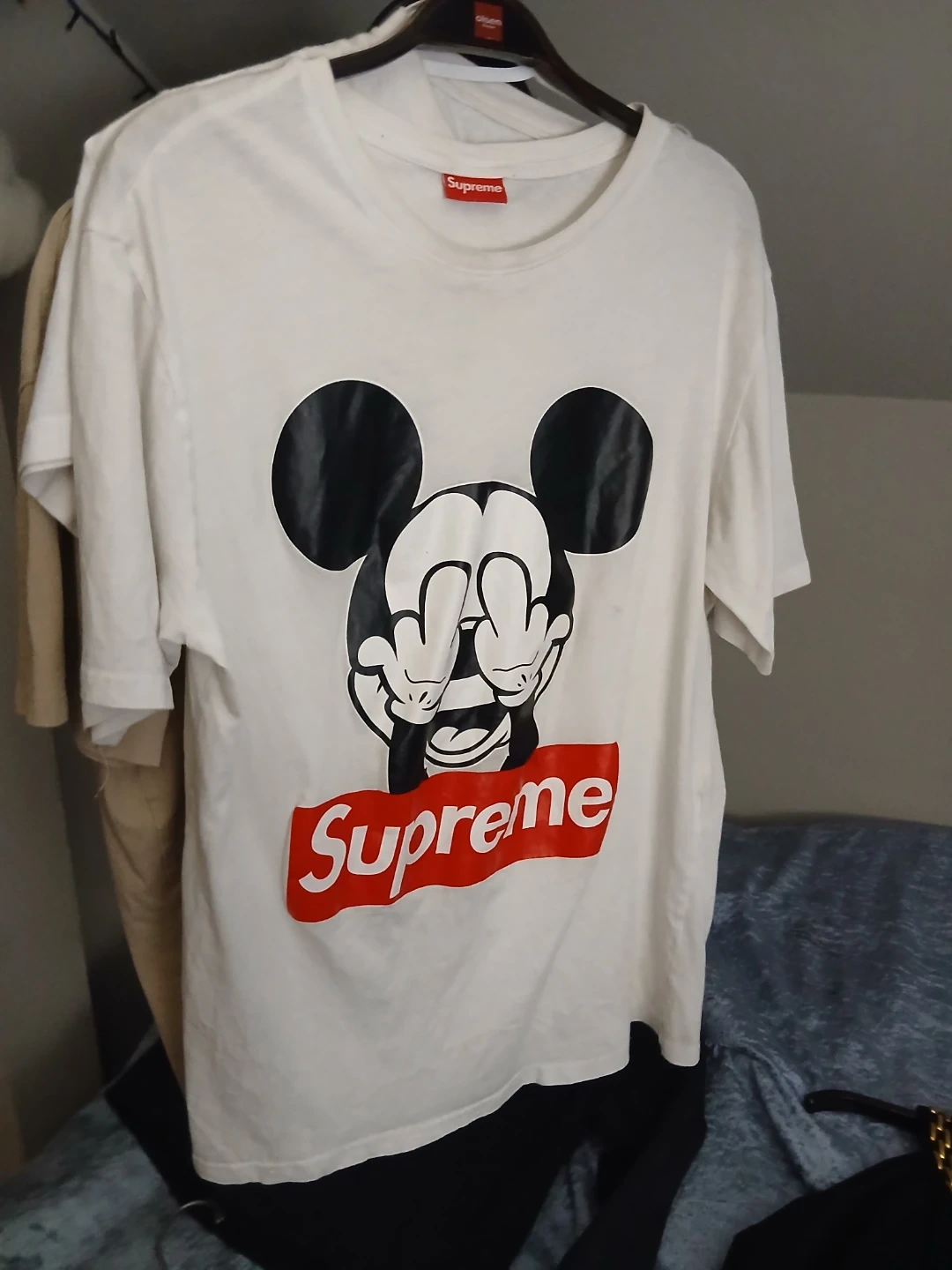 Buy & SellSupreme Mickey Mouse T-ShirtSupreme Mickey Mouse T-Shirt$42White Supreme t-shirt featuring a graphic of Mickey Mouse with the Supreme box logo. Made in Italy. Cotton material.ConditionGoodSizeLargeBrandSupremeWHERE TO MEETCheck LocationView MapSELLERverifiedsarahCrescent Beach720 reviews0 chats·0 favorites·1 viewsSEND CHAT TO SELLERHi sarah! I’m interested in your listing.Hi sarah! I’m interested in your listing.Get the Karrot app to chatSign In to chat