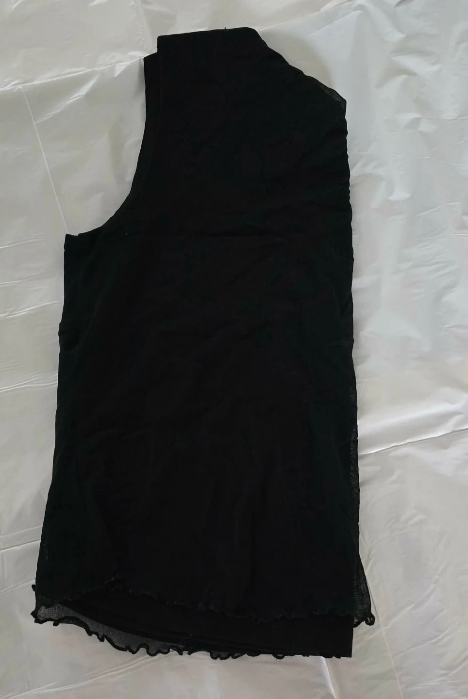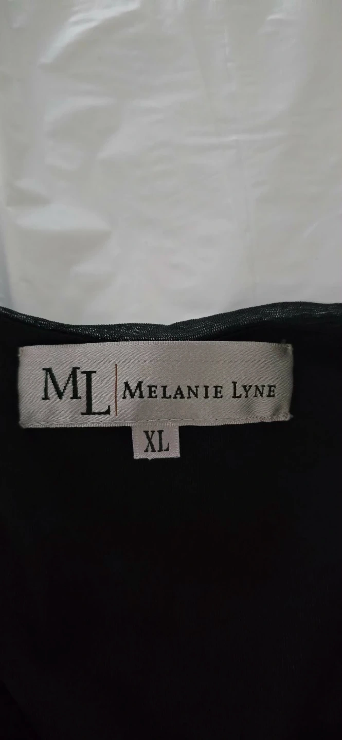 Sleeveless black top from Melanie Lyne. Features floral embroidery and sequin details. Size XL. Sheer overlay with lettuce hem. Fits like a large.
