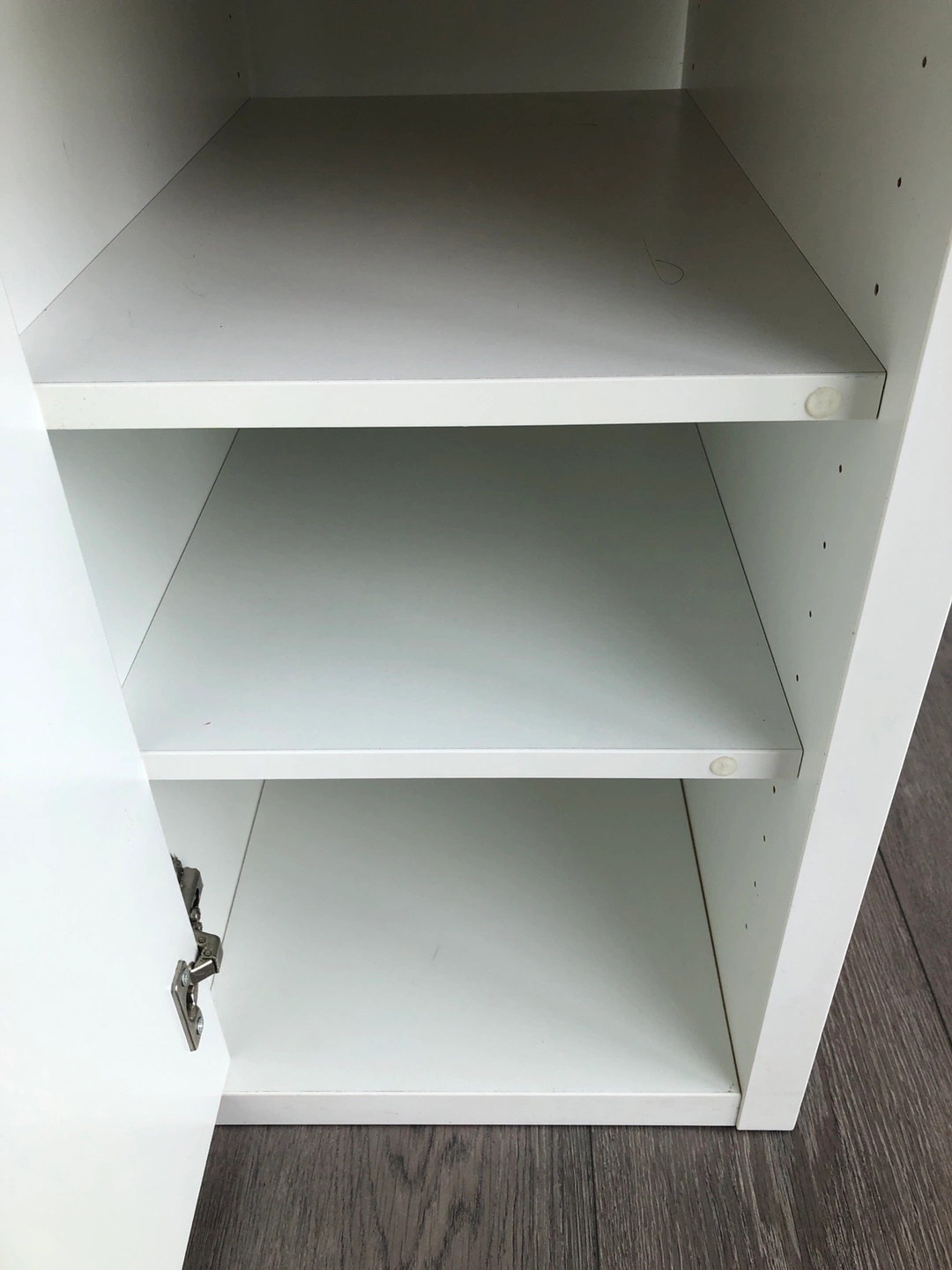Selling a white IKEA desk with built-in storage. It features 2 drawers and a cabinet with shelves, perfect for keeping your workspace organized. Great for a home office or student room!