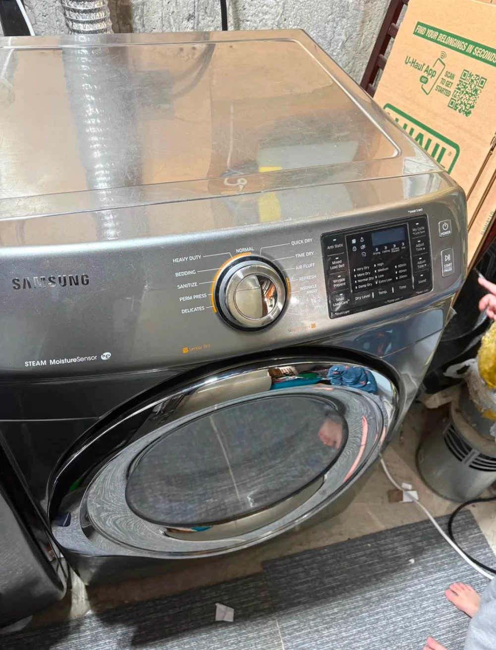 Selling a Samsung clothes dryer, model number DV42H5200EP/AC. It's in good working condition and ready for a new home. This dryer was made in Mexico and requires 120V/240V and 3400W with a 30 AMP circuit or 4 wire connection. It also features steam moisture sensor.