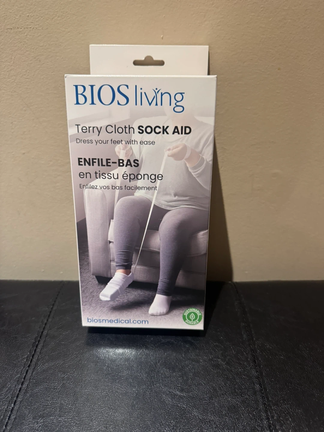 Selling a BIOS Living Terry Cloth Sock Aid to help dress your feet with ease! It's brand new and in its original packaging. Perfect for anyone who needs a little extra help with their socks