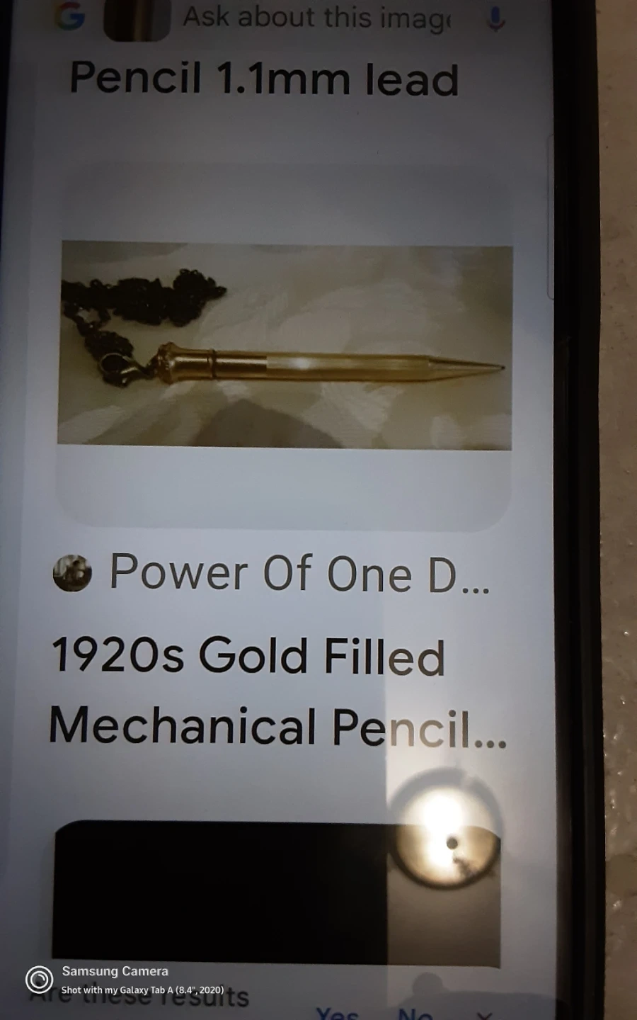 Here's a beautiful vintage mechanical pencil from the 1920s. It's gold filled and comes with a matching chain. The lead size is 1.1mm. This pencil is a neat piece of history!