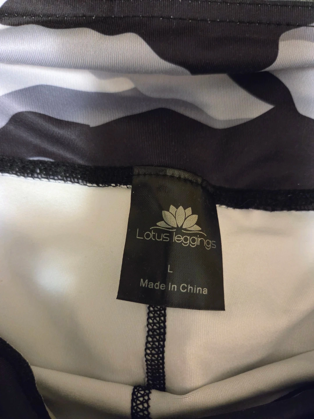 Selling a pair of Lotus Leggings in size L! They feature a cool camouflage pattern and are made from 88% polyester and 12% elastane. These leggings are perfect for workouts or everyday wear!