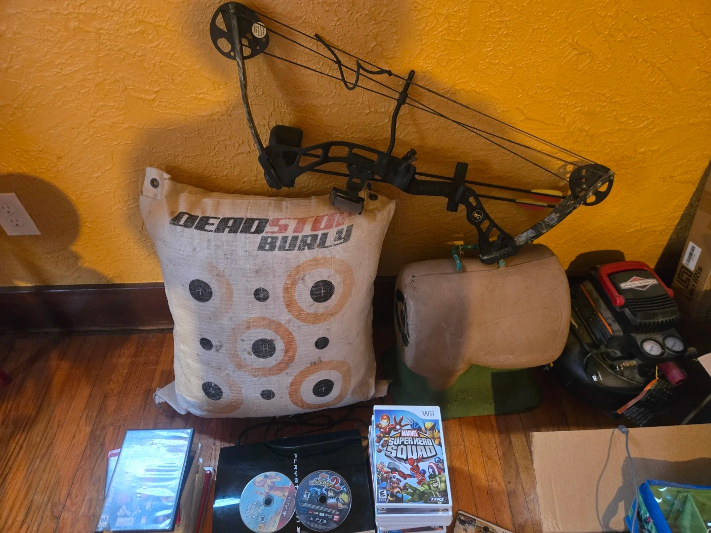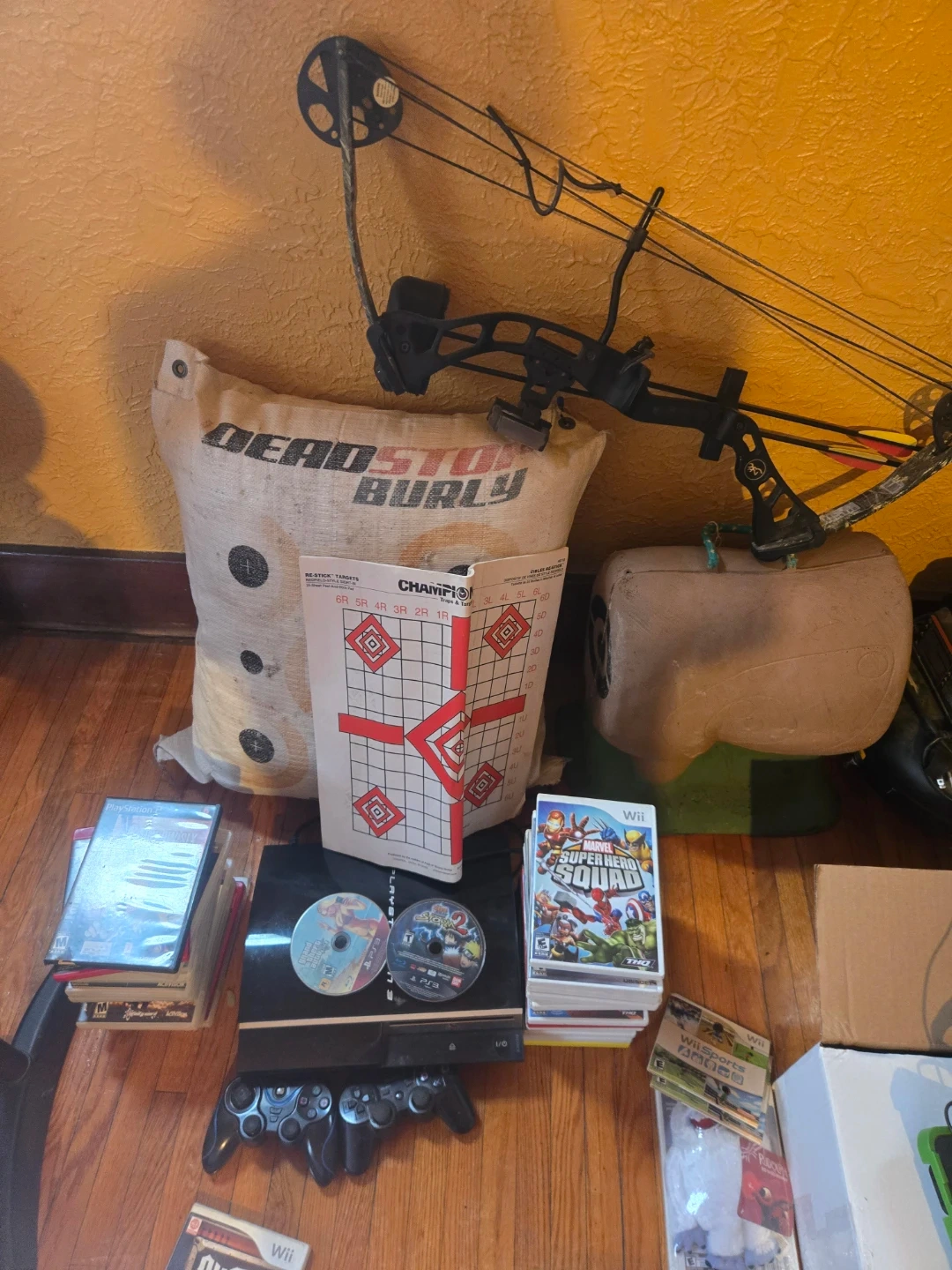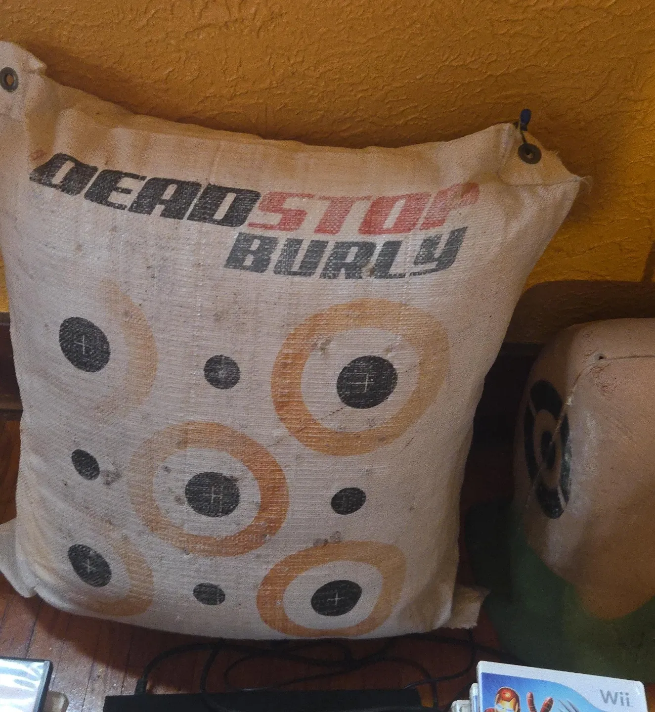 This is a Deadstop Burly archery target bag. It features multiple bullseyes for practice. Great for honing your archery skills!