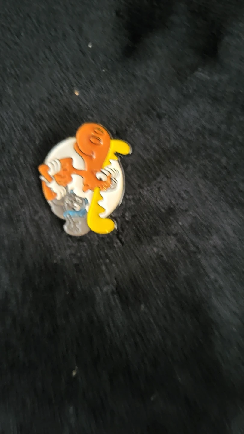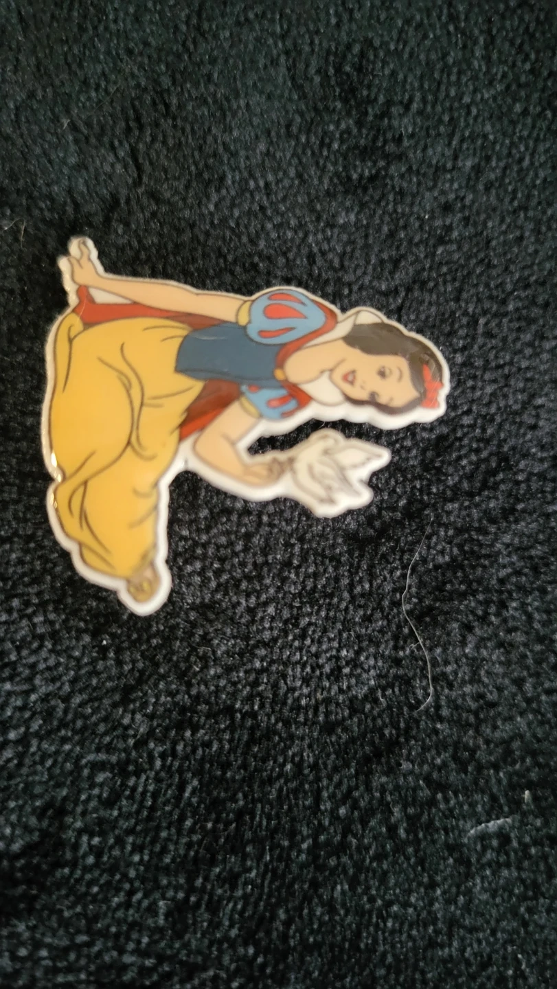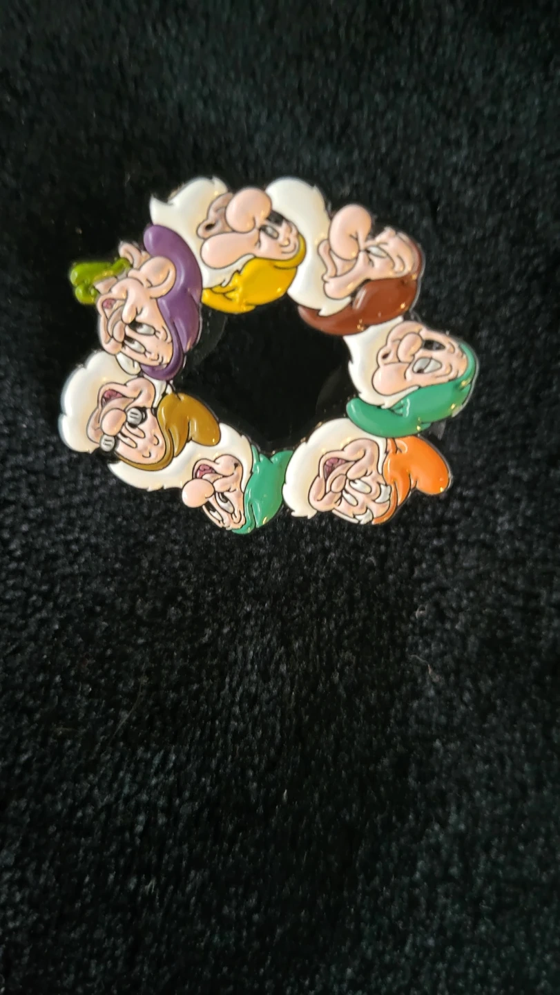 Set of enamel pins featuring cartoon characters including the Seven Dwarfs, Snow White, and Wile E. Coyote. These pins are made of metal and enamel. They're great for decorating jackets or bags! 5.00 each