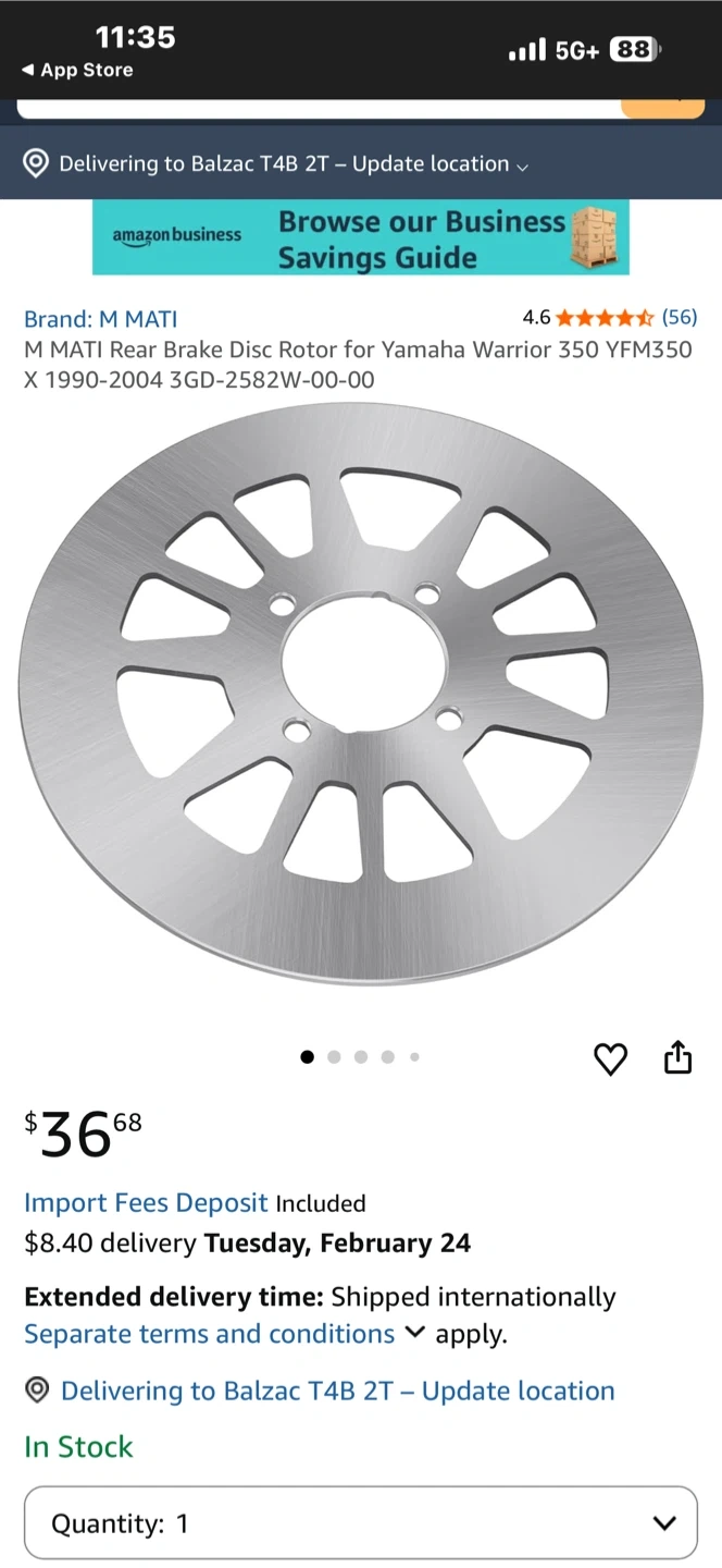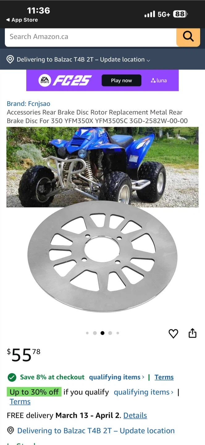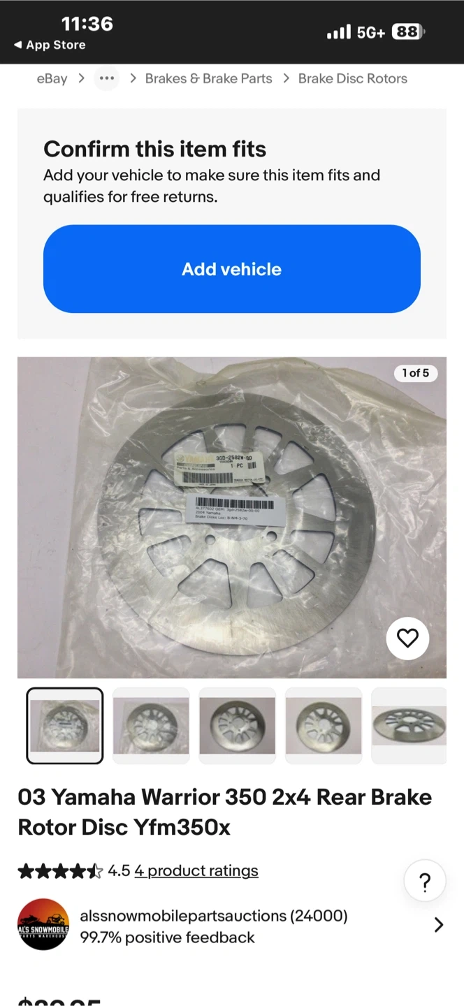 This is a rear brake disc rotor replacement for a Yamaha Warrior 350. It's made of metal. Fits models from 1990-2004.