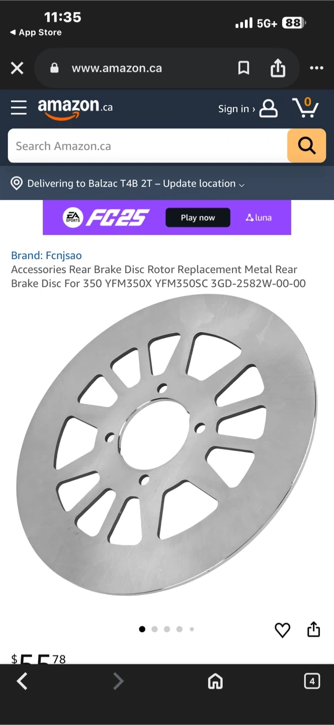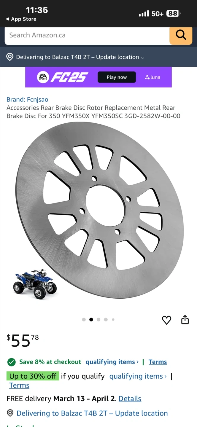 This is a rear brake disc rotor replacement for a Yamaha Warrior 350. It's made of metal. Fits models from 1990-2004.