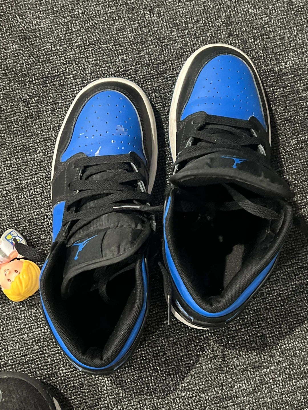 Selling a pair of Air Jordan 1 Low sneakers in Hyper Royal and Black! These are in good condition and have the classic Jordan style. They're great for everyday wear or for playing basketball. Feel free to message me with any questions!