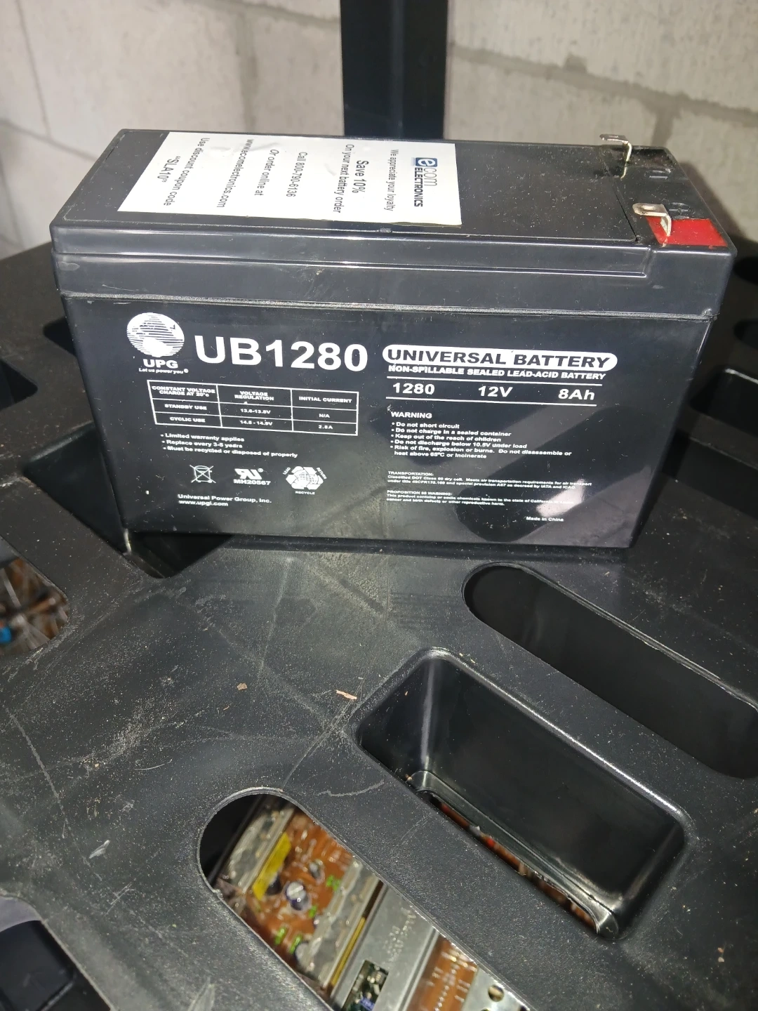 This is a Universal Battery UB1280, a 12V 8Ah sealed lead acid battery. It's a non-spillable design. Useful for backup power systems and emergency lighting.