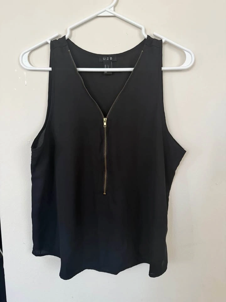 Buy & SellWomen's Black Chiffon V-Neck Tank Top - Size LargeWomen's Black Chiffon V-Neck Tank Top - Size Large$10Women's black chiffon V-neck tank top with a gold zipper, size large.ConditionLike newSizeLargeWHERE TO MEETCheck LocationView MapSELLERAshleyChurch and Wellesley20421 reviews0 chats·1 favorites·13 viewsSEND CHAT TO SELLERHi Ashley! I’m interested in your listing.Hi Ashley! I’m interested in your listing.Get the Karrot app to chatSign In to chat