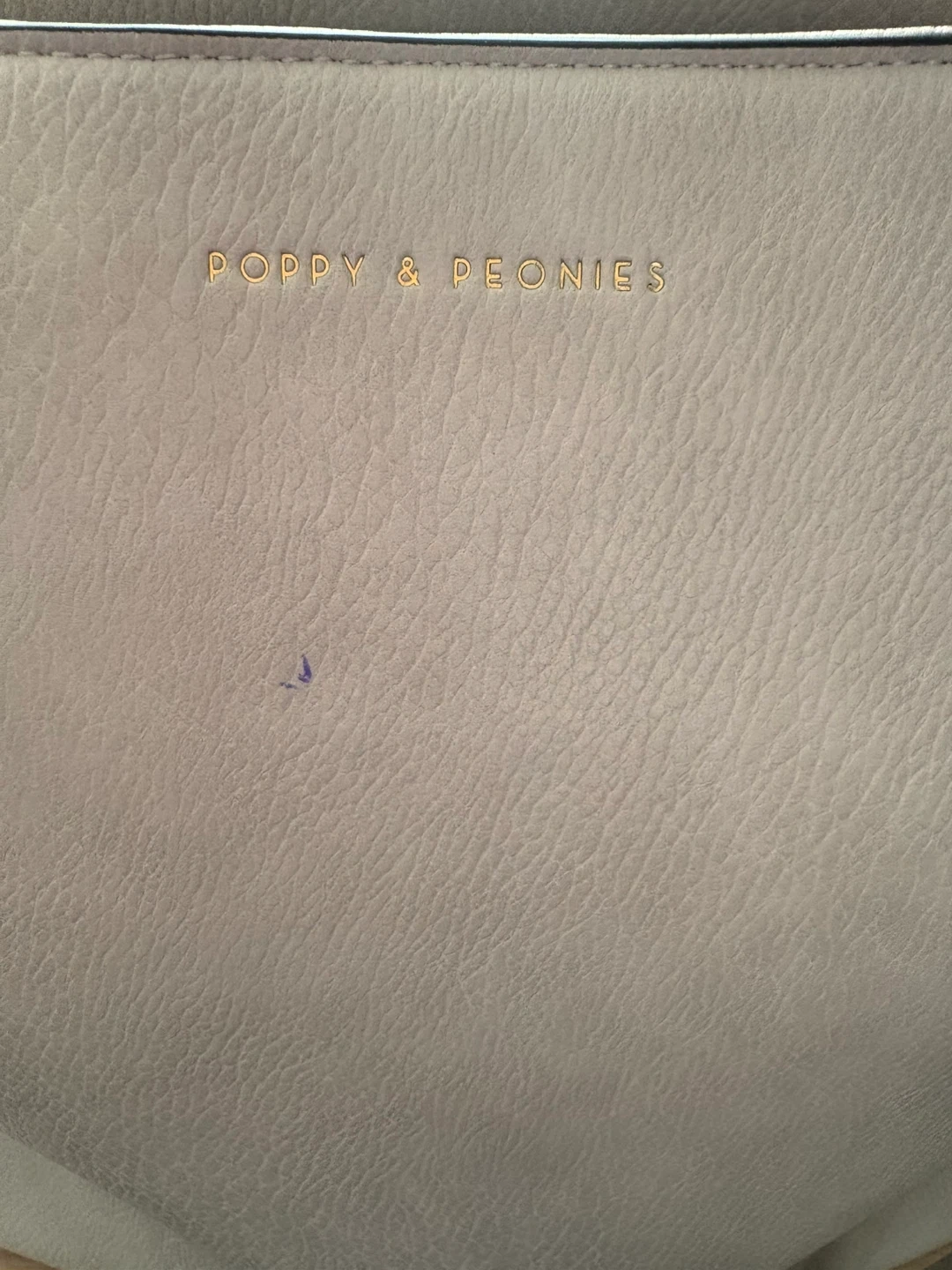 It is crafted in vegan leather, with an interior lining made from recycled plastic bottles. Dimensions are 19” L x 13” H x 8” W. Strap Drop Length: 11"