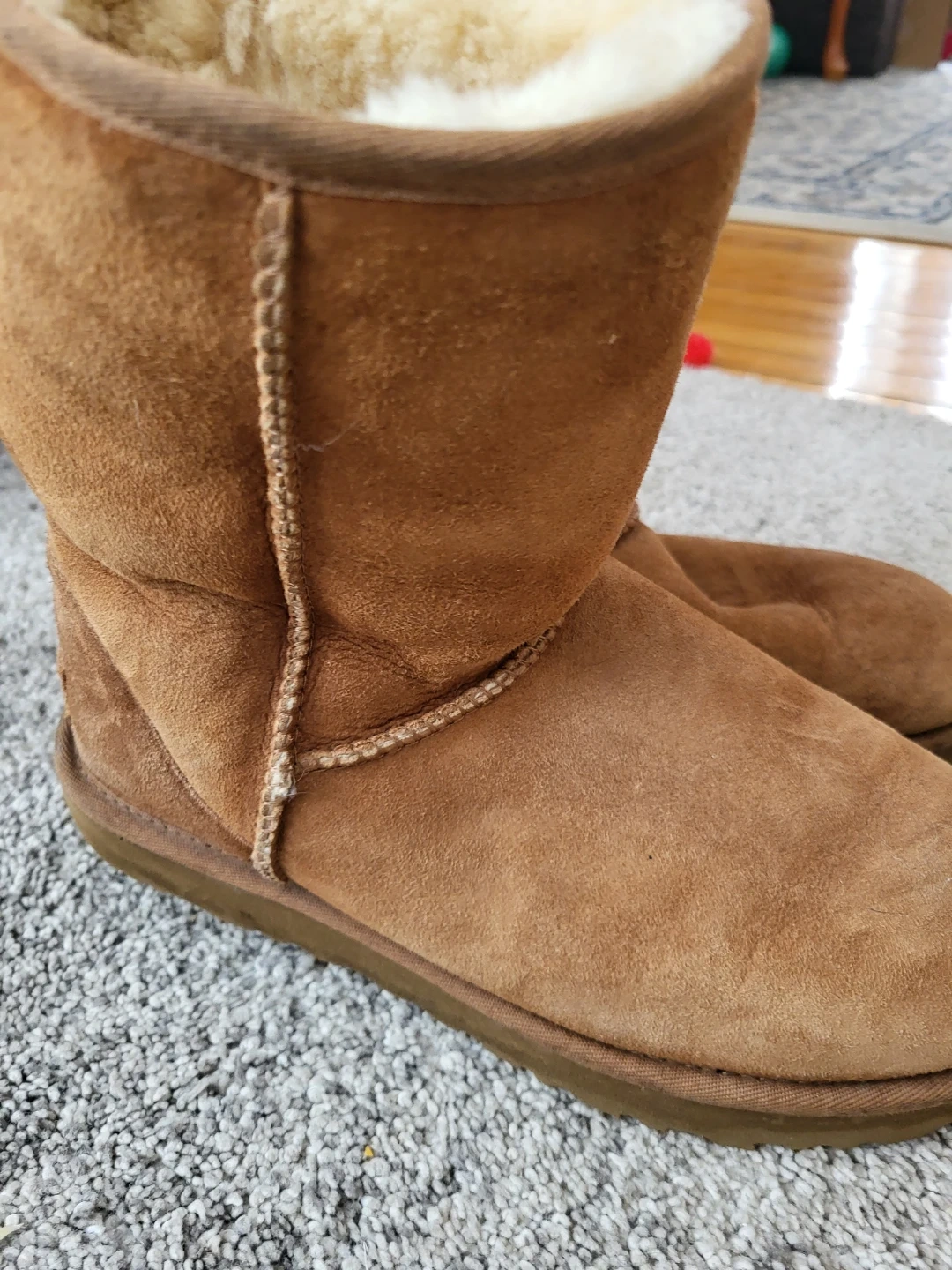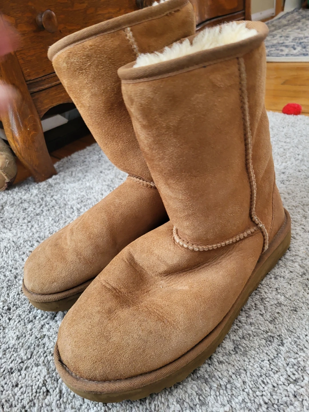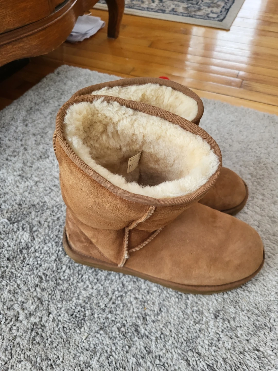 Buy & SellUGG Australia Boots - Size 9UGG Australia Boots - Size 9$55Classic tan suede UGG boots with sheepskin lining. These boots are cozy and perfect for cooler weather. They offer warmth and comfort.ConditionLike newSize9WHERE TO MEETWorthingtonView MapSELLERverifiedTammyWorthington16111 reviews0 chats·0 favorites·5 viewsSEND CHAT TO SELLERHi Tammy! I’m interested in your listing.Hi Tammy! I’m interested in your listing.Get the Karrot app to chatSign In to chat