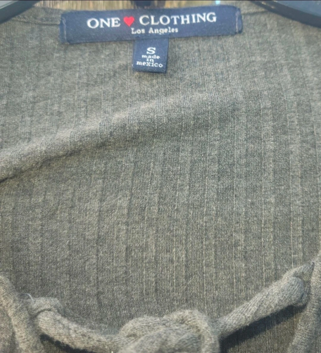 ONE CLOTHING long sleeve top with a lace-up detail at the neckline. Ribbed texture throughout. Made in Mexico. Size is small.