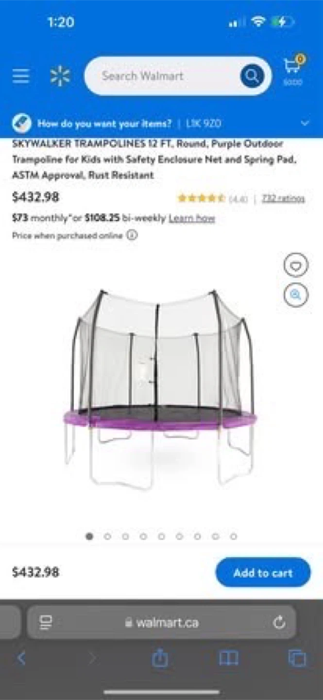 Skywalker Trampolines 12 ft. round outdoor trampoline for kids. It's made with a safety enclosure net and spring pad. ASTM approval and rust-resistant design.