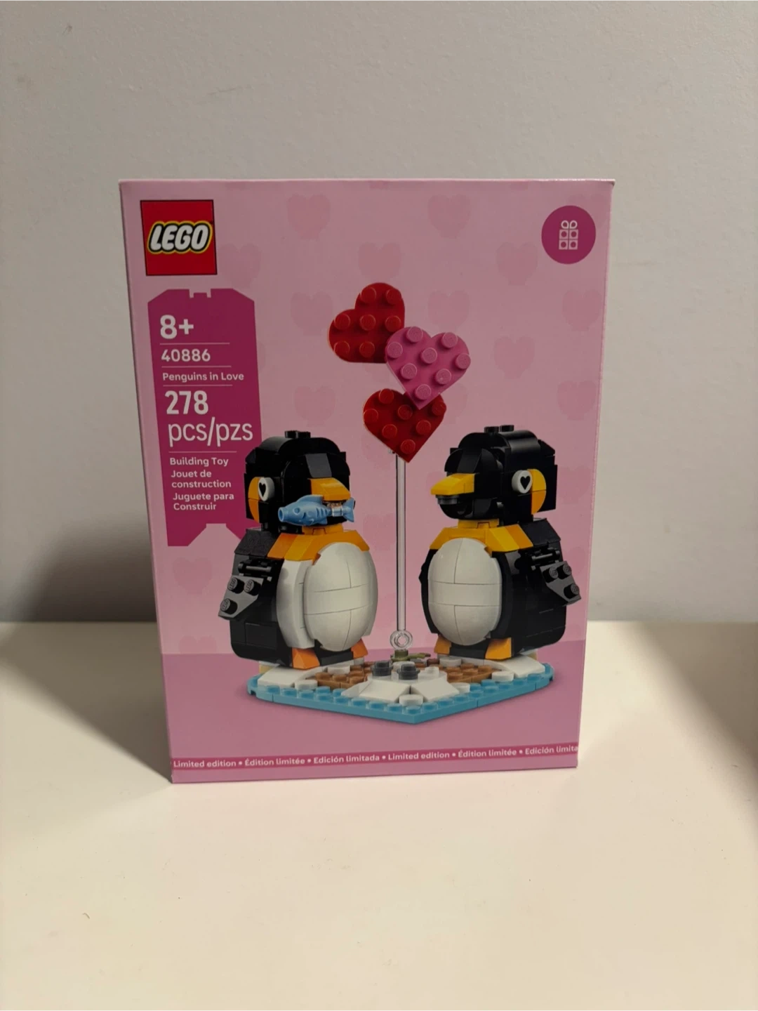 This is the LEGO 40886 "Penguins In Love" building set. It features two adorable penguins and includes 278 pieces. It's a fun set for builders aged 8 and up.