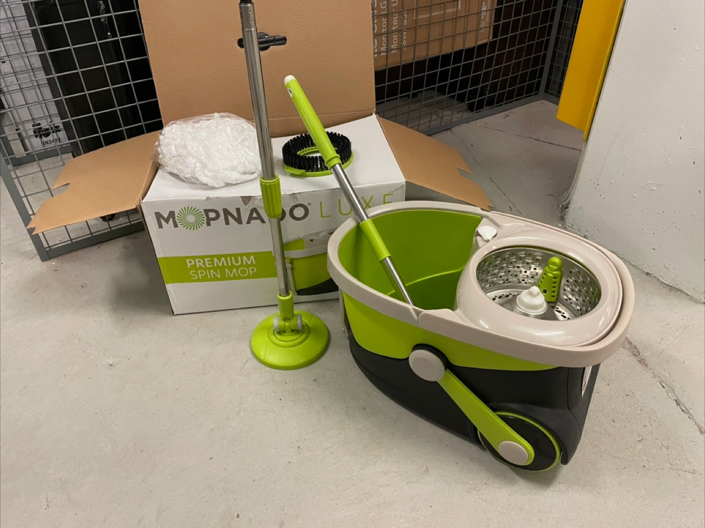 Selling a Mopnado Luxe Premium Spin Mop. It is in like new condition and comes with all the original components! The box is included as well.