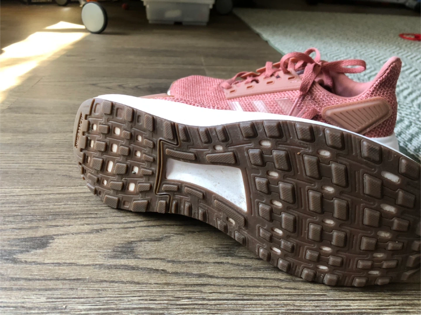 These Adidas running shoes are a lovely rose pink colour. They feature a breathable mesh upper and a durable rubber outsole for great traction. Perfect for your daily runs or athleisure wear, very good used condition size 7 $20 thanks.