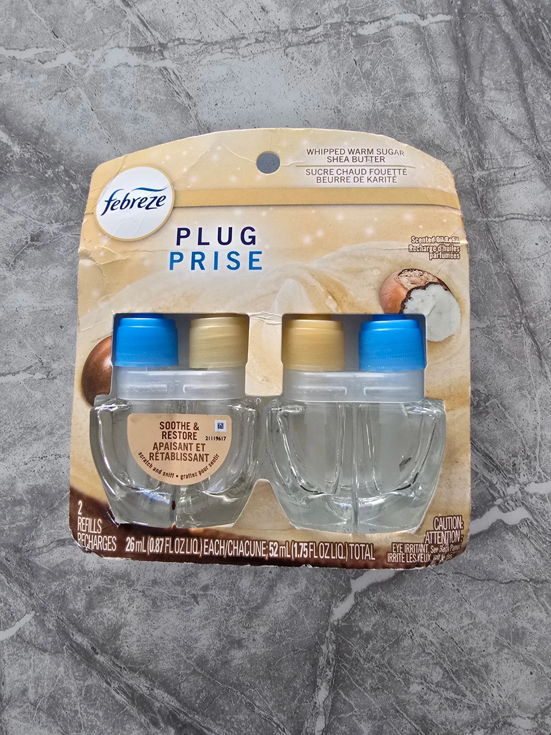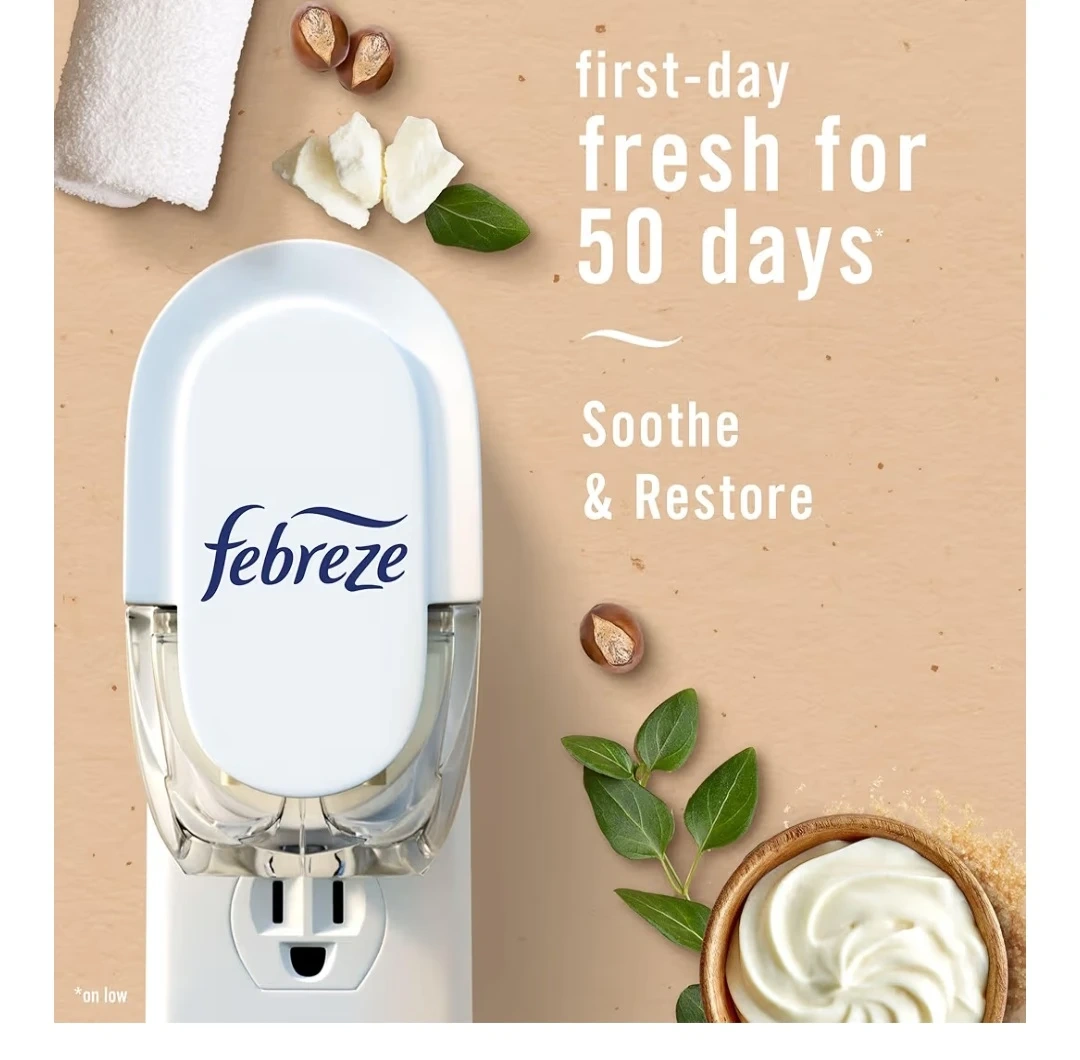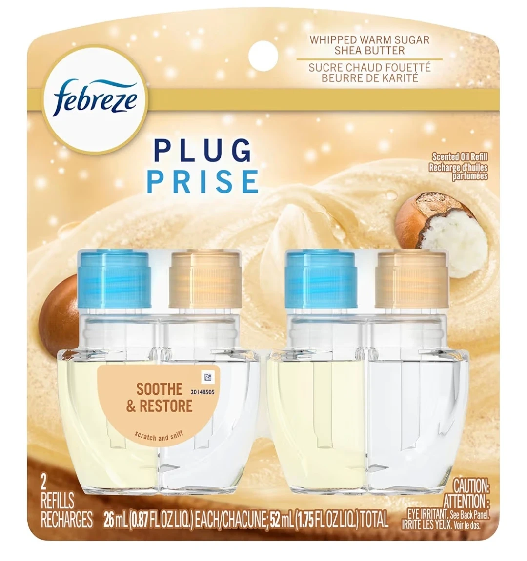 Febreze Plug refills in the Soothe & Restore scent. Each