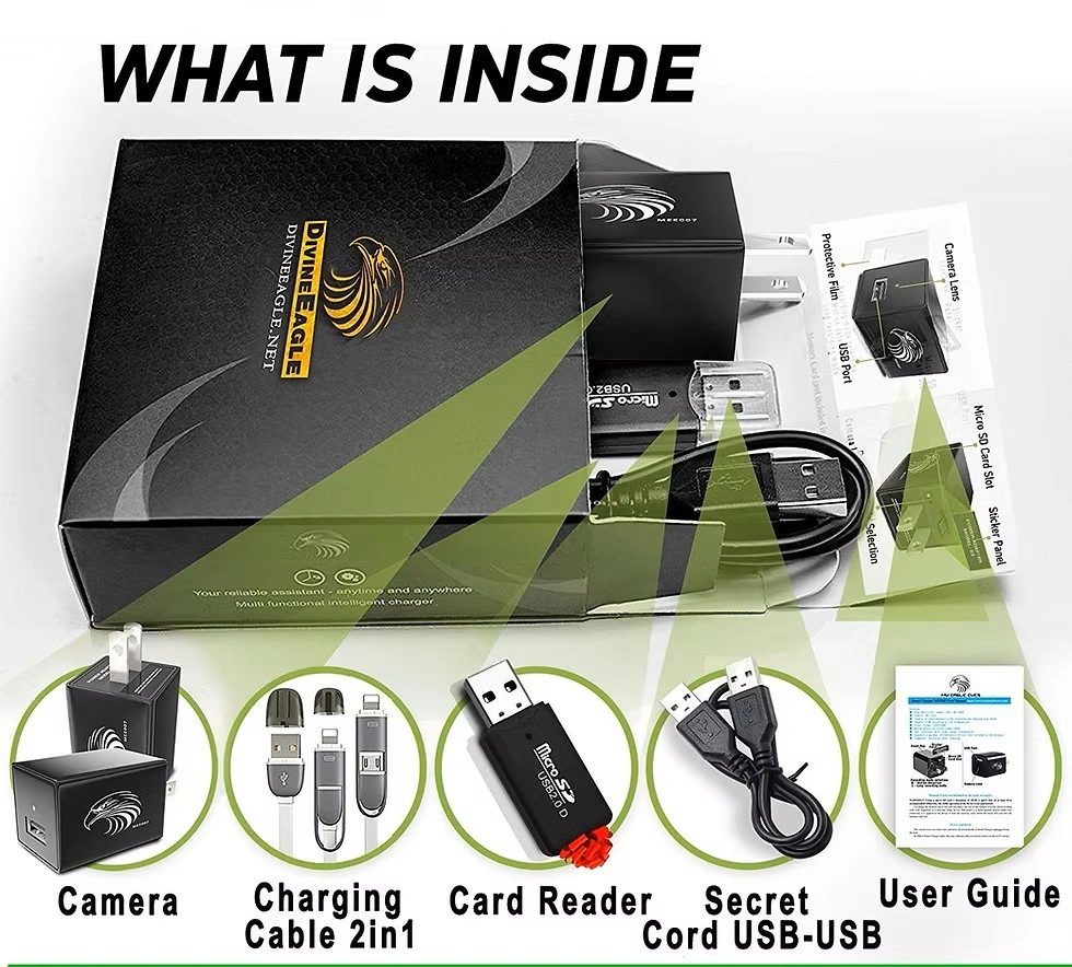 The DivineEagle MEE007s is a discreet USB wall charger spy camera that works as a functional USB charger while secretly recording in Full HD 1080p. Ideal for home security, office monitoring, or travel. No Wi-Fi or complex setup required – just plug and record.
