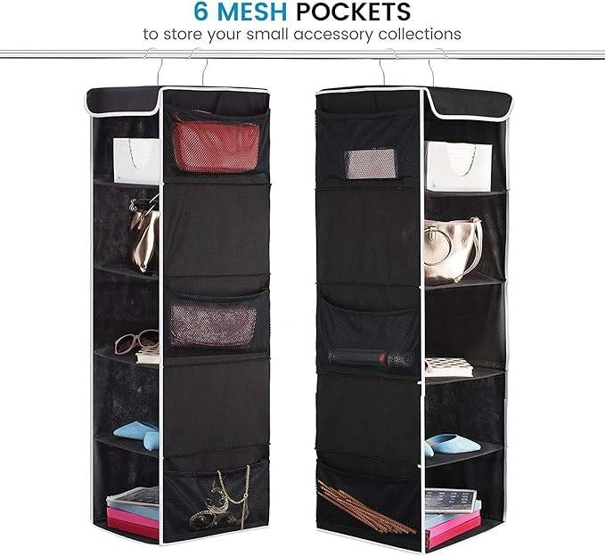 5-Shelf Hanging Closet Organizer with 6 Side Mesh Pockets