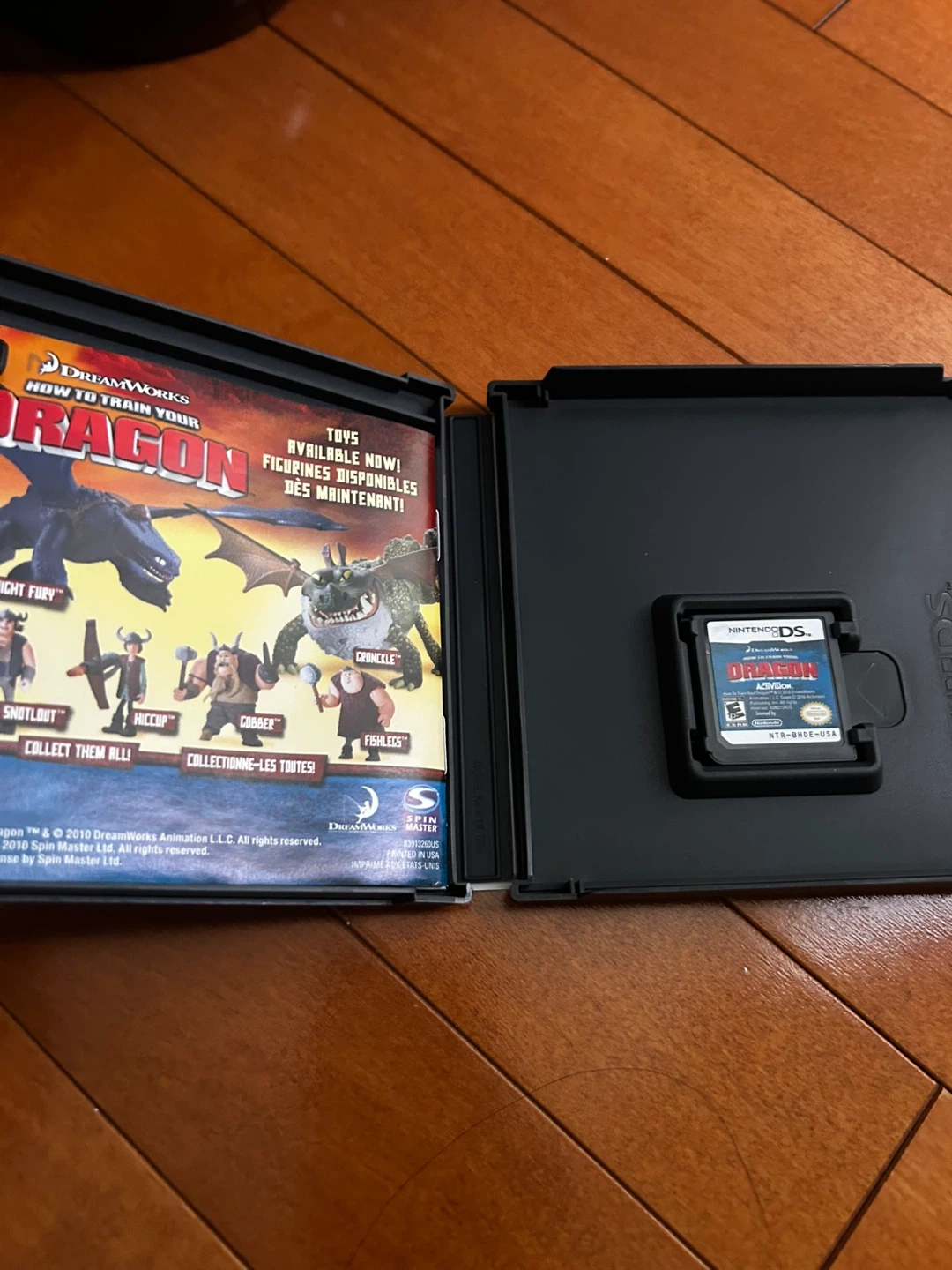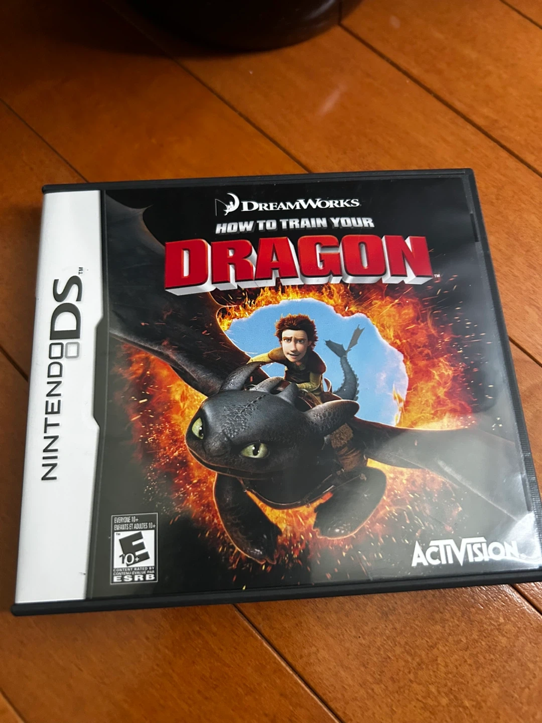 This is the How to Train Your Dragon game for the Nintendo DS. It's rated E10+ by ESRB. It's compatible with the DS and DSi systems.
