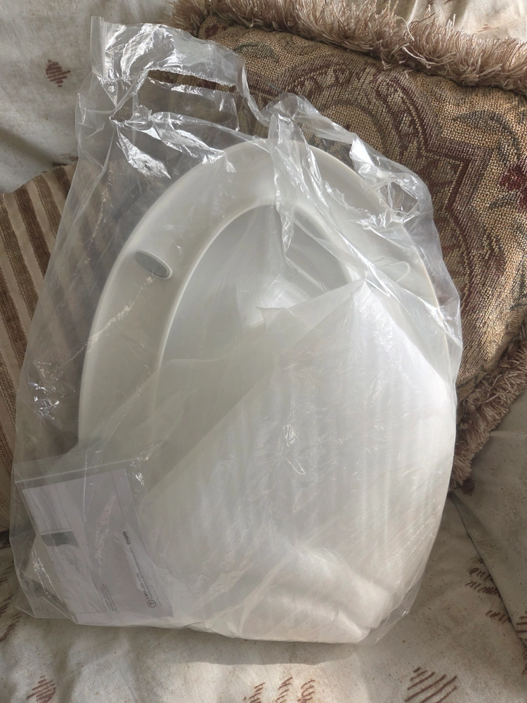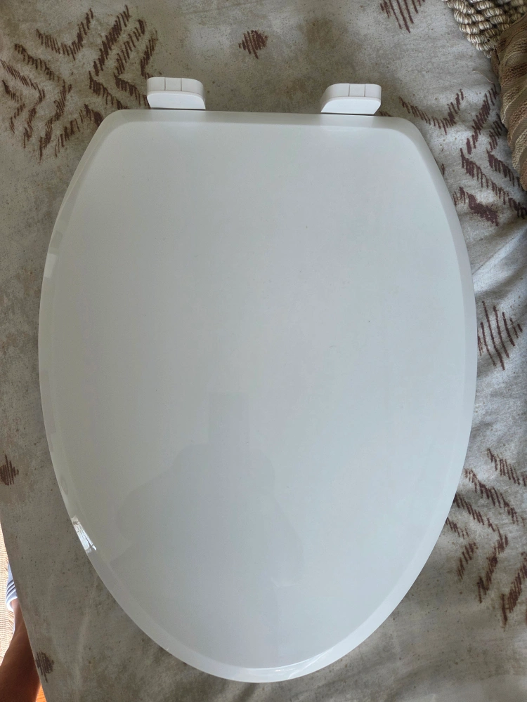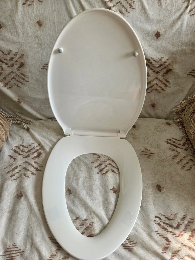 White toilet seat. New condition, still in the plastic. A great item to have. This seat will make any bathroom that much better.