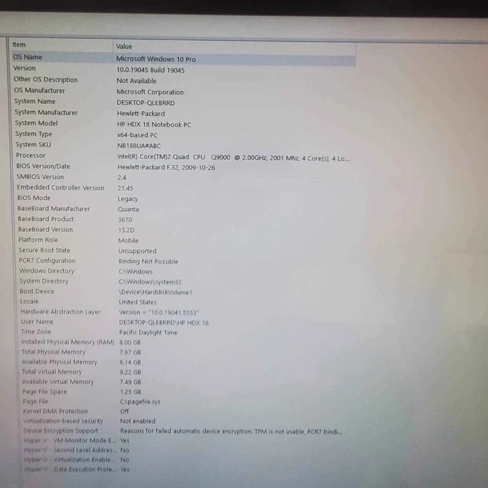 Get ready to own a piece of computing history with this HP HDX 18 Premium Series laptop updated with Windows 10 Pro. Powered by an Intel CPU and 8 GB of RAM. Large 19" Display. Panel touch Controls. BlueRay DVD/ CD writer - burner, Altec Lansing Dolby Audio, built in Biometrics, PCMCIA Slot houses hidden media remote control. Its in excellent condition and fully functional. Missing Down Arrowy key (works). Battery has been removed. This was the Top of the line HP Notebook, perfect for someone who appreciates vintage tech and needs a backup computer for simple tasks.