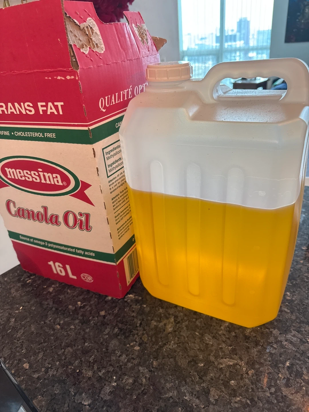 Bought and used a few litres. At least 12 litres left. box of Messina Canola Oil. It's superfine and cholesterol-free, and a source of omega-3 polyunsaturated fatty acids