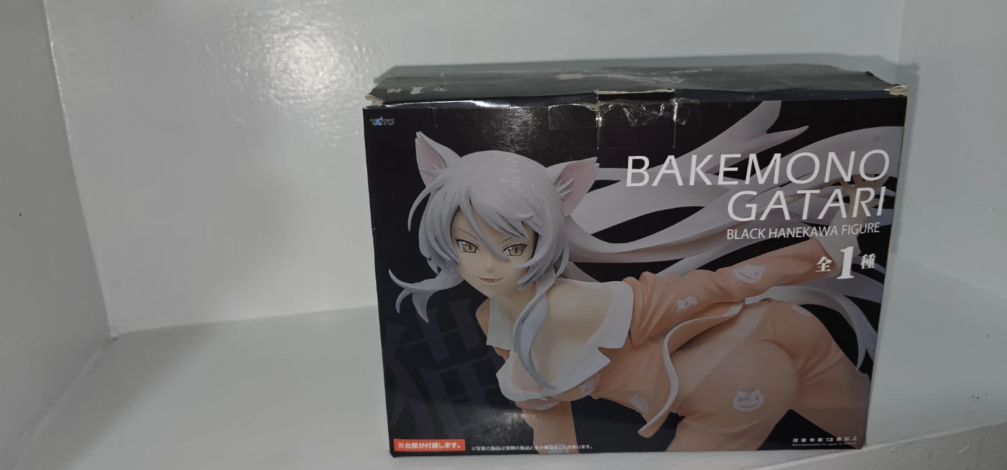 This is a Black Hanekawa figure from Bakemonogatari. It comes in its original box. This figure is a great addition for any anime collector!