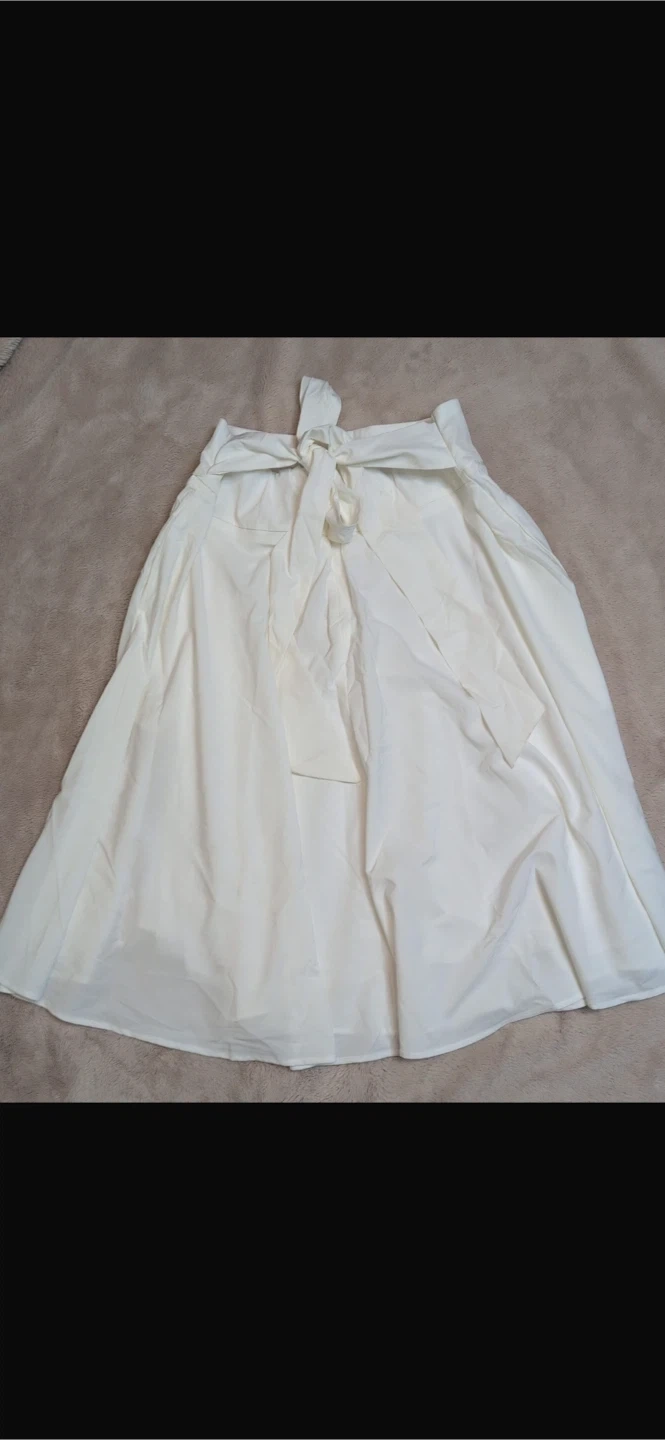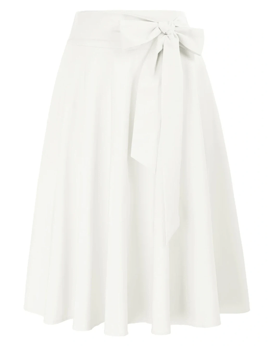 Belle Poque midi skirt in white. It features a lovely bow detail at the waist. Size M. This skirt's classic elegance makes it suitable for various occasions!