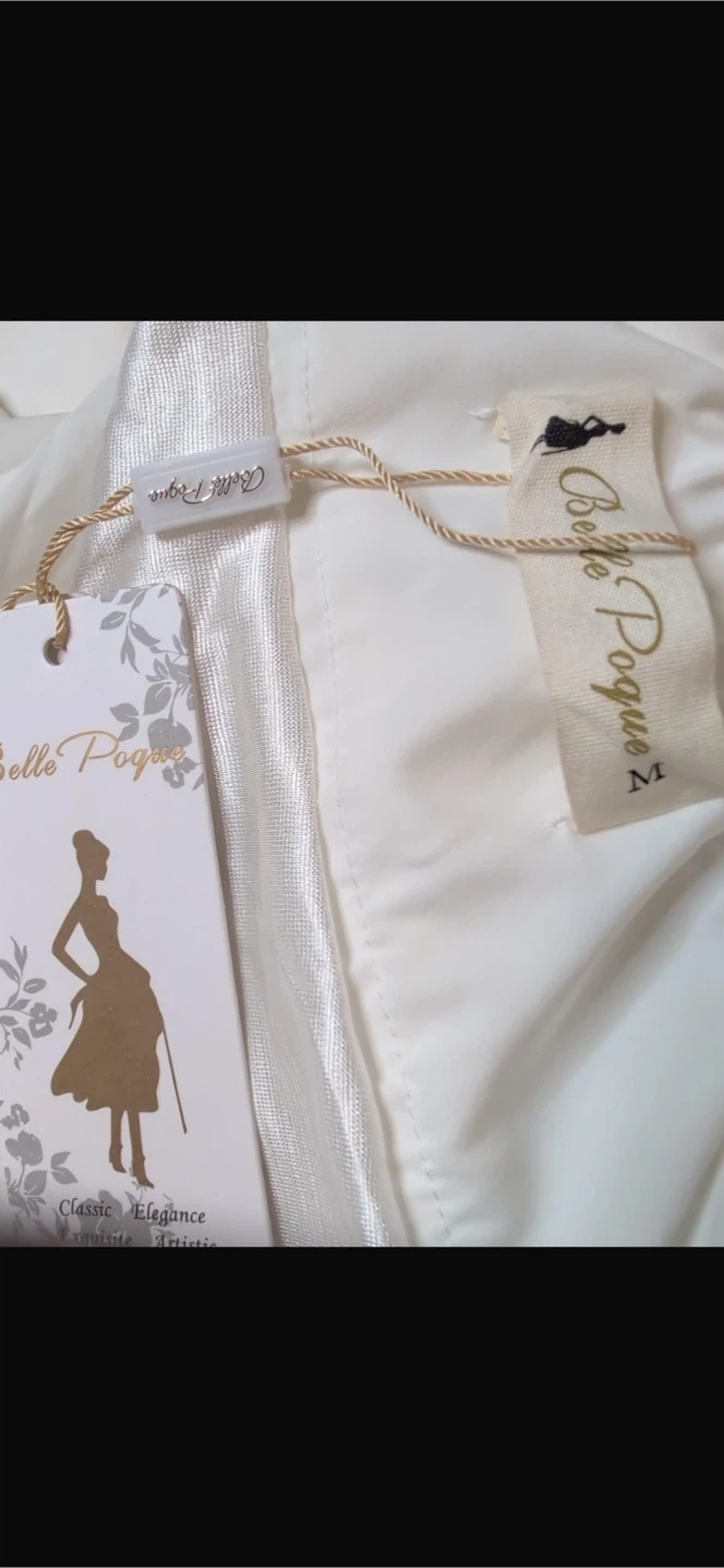 Belle Poque midi skirt in white. It features a lovely bow detail at the waist. Size M. This skirt's classic elegance makes it suitable for various occasions!